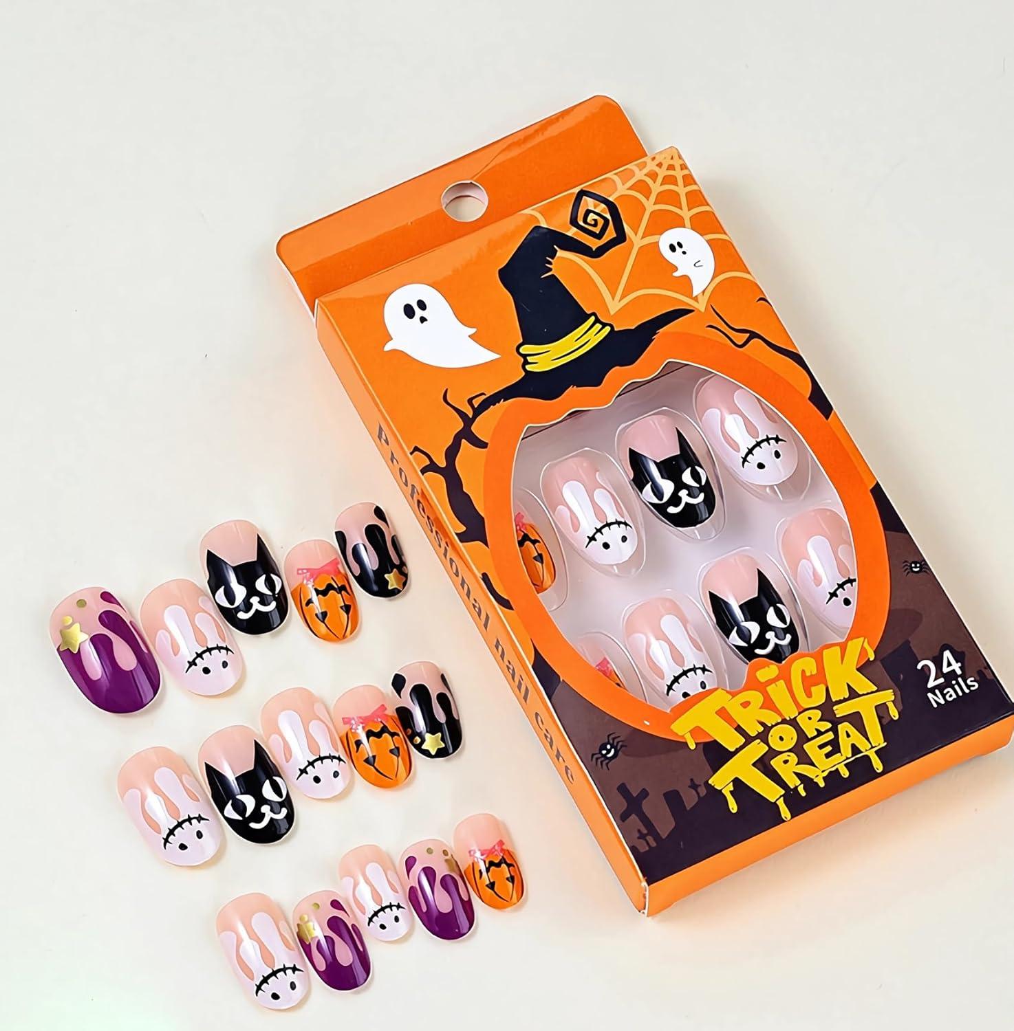 🕷Perfect for Halloween: Get into the spirit of Halloween with our short oval Fake Nails. Transform your nails into a festive work of art that screams Halloween. Whether you're attending a costume party or just want to impress your friends, these nails are the perfect accessory for the occasion