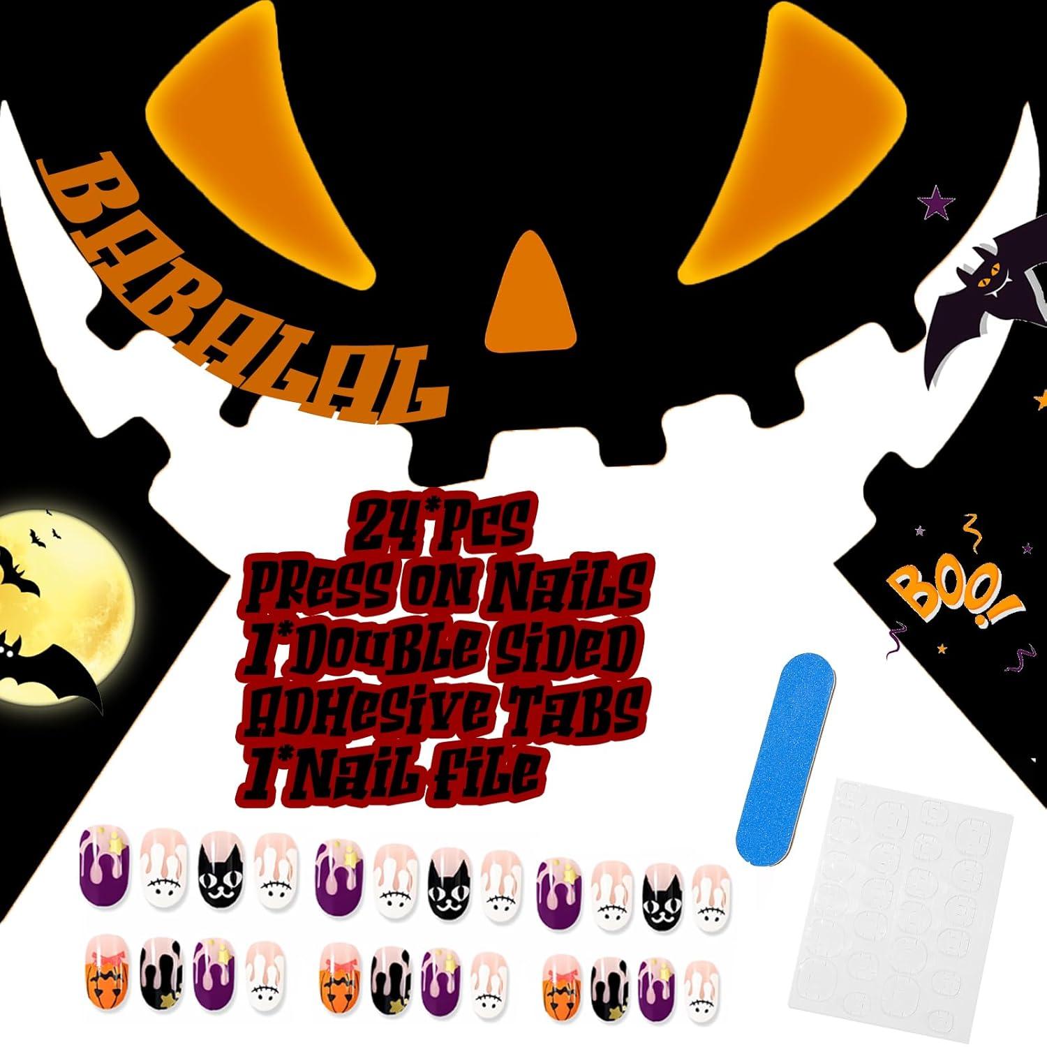 🦇Versatile Use: Suitable for women, girls, and even men who want to add a touch of Halloween spirit to their nails. These Halloween press on nails are perfect for Halloween parties, costume events, or simply for those who love to express their creativity