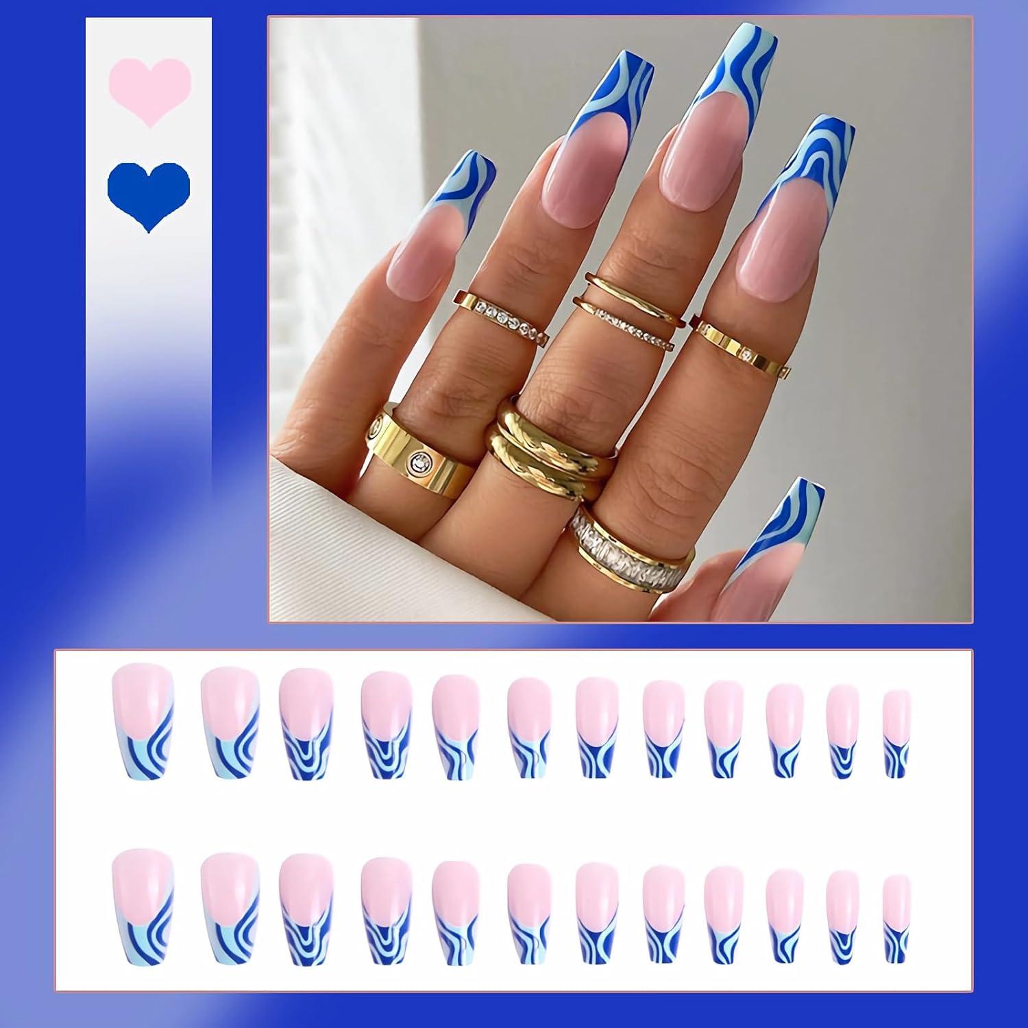 【Package Contains】You will get 24 pieces of long press on nails with 12 different sizes, 1 nail glue for DIY your own nails. you can choose the most suitable false nail for yourself, it is easy to trim and file them to in any length and shape you like