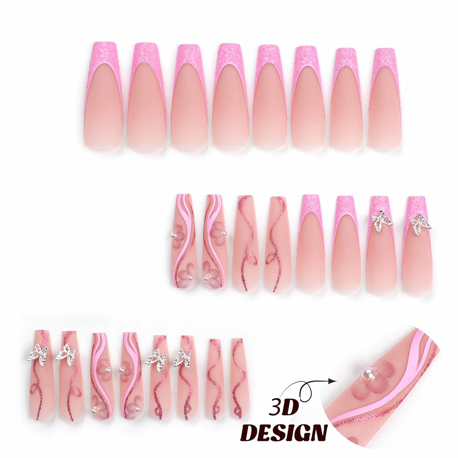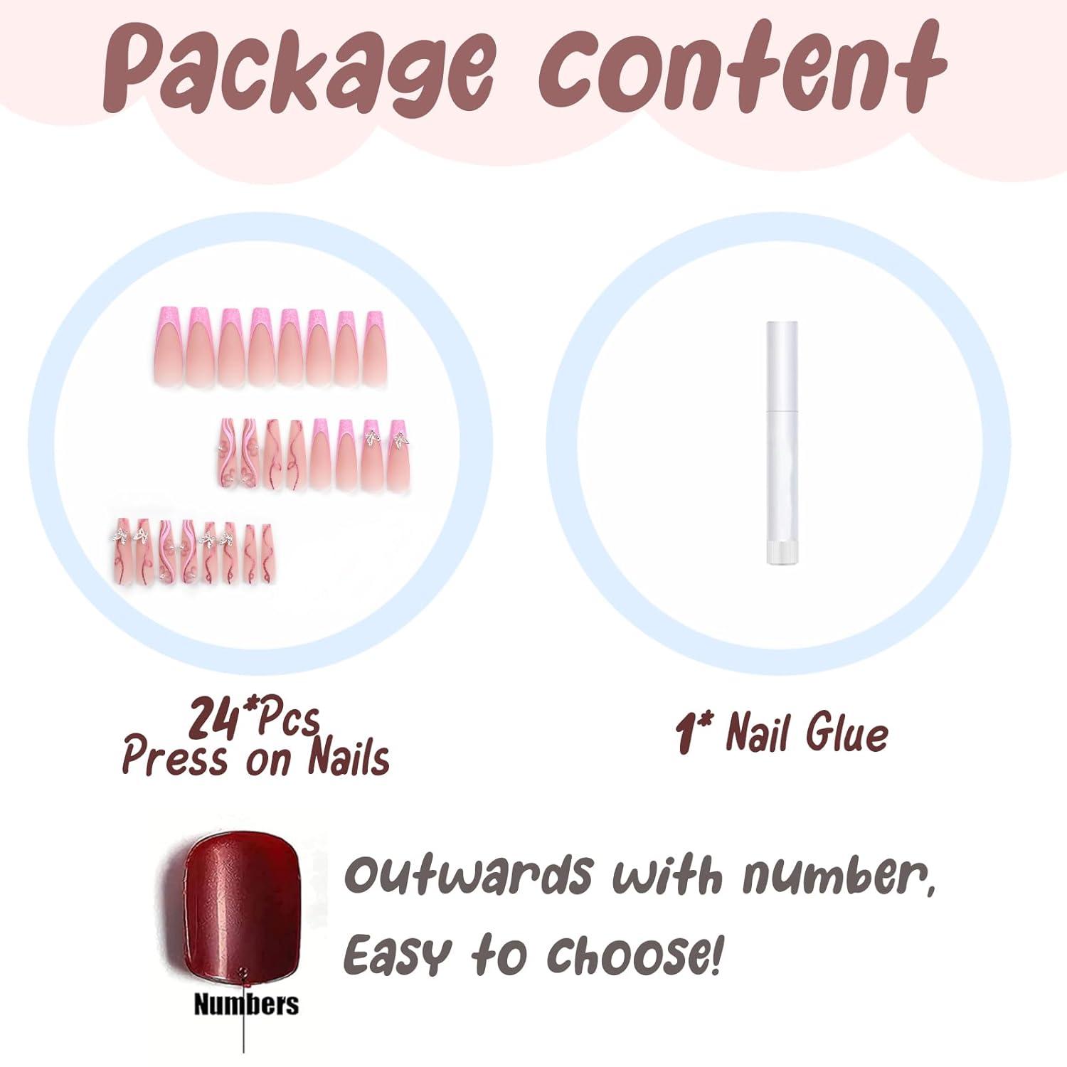 【Wide Occasions】These fake nails long designs can make you stand out at parties, dates, weddings, valentine Day proms, and Halloween. It can be given as a gift to your wife, mother, girlfriend, daughter or friends. It will bring them a comfortable and convenient manicure art experience