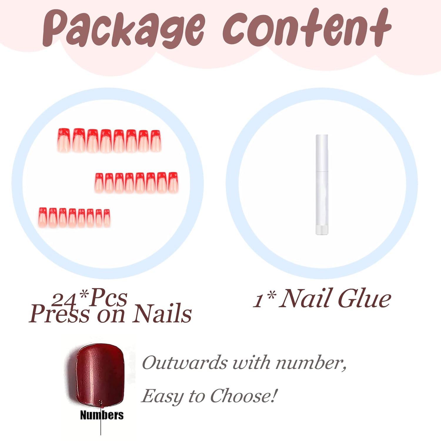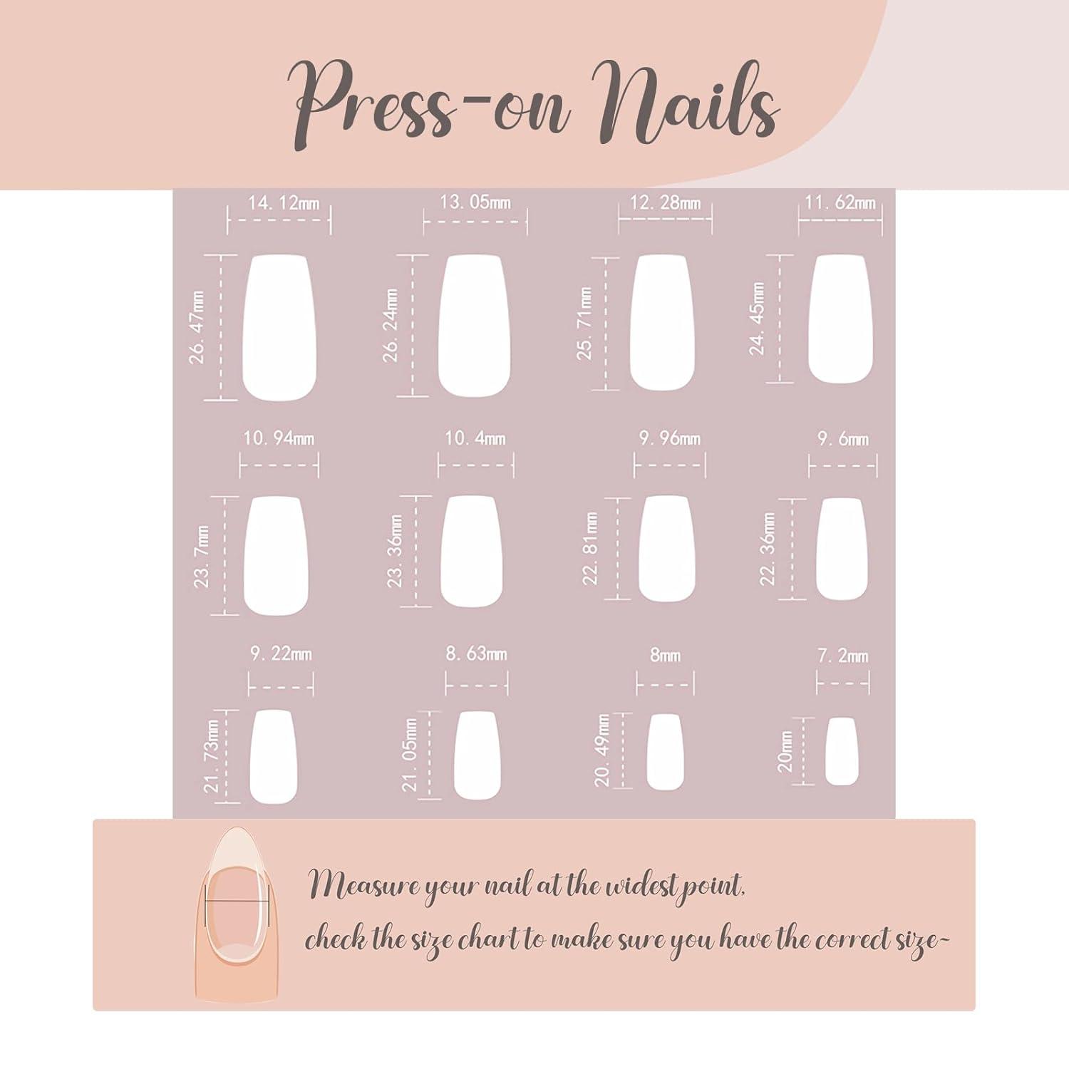【Package Contains】You will get 24 pieces of long press on nails with 12 different sizes, 1 nail glue for DIY your own nails. you can choose the most suitable false nail for yourself, it is easy to trim and file them to in any length and shape you like