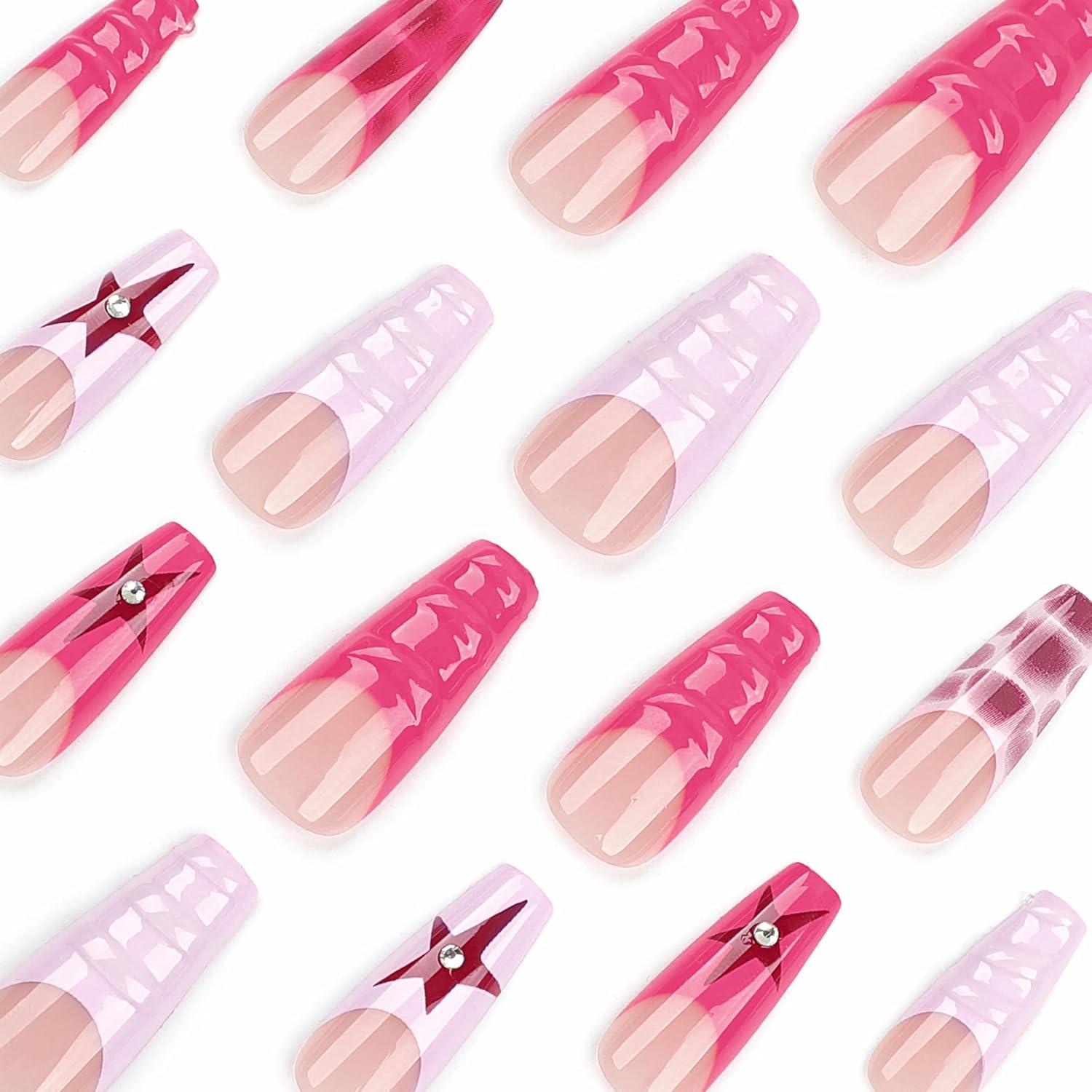 imageBABALAL Duck Nails Press on Short Fake Nails Black Pink Glue on Star Charm Y2k Stick on Acrylic 24Pcs Duck Bill Gothic Manicure Reusable Artificial Full Cover False NailFNDU304cherry