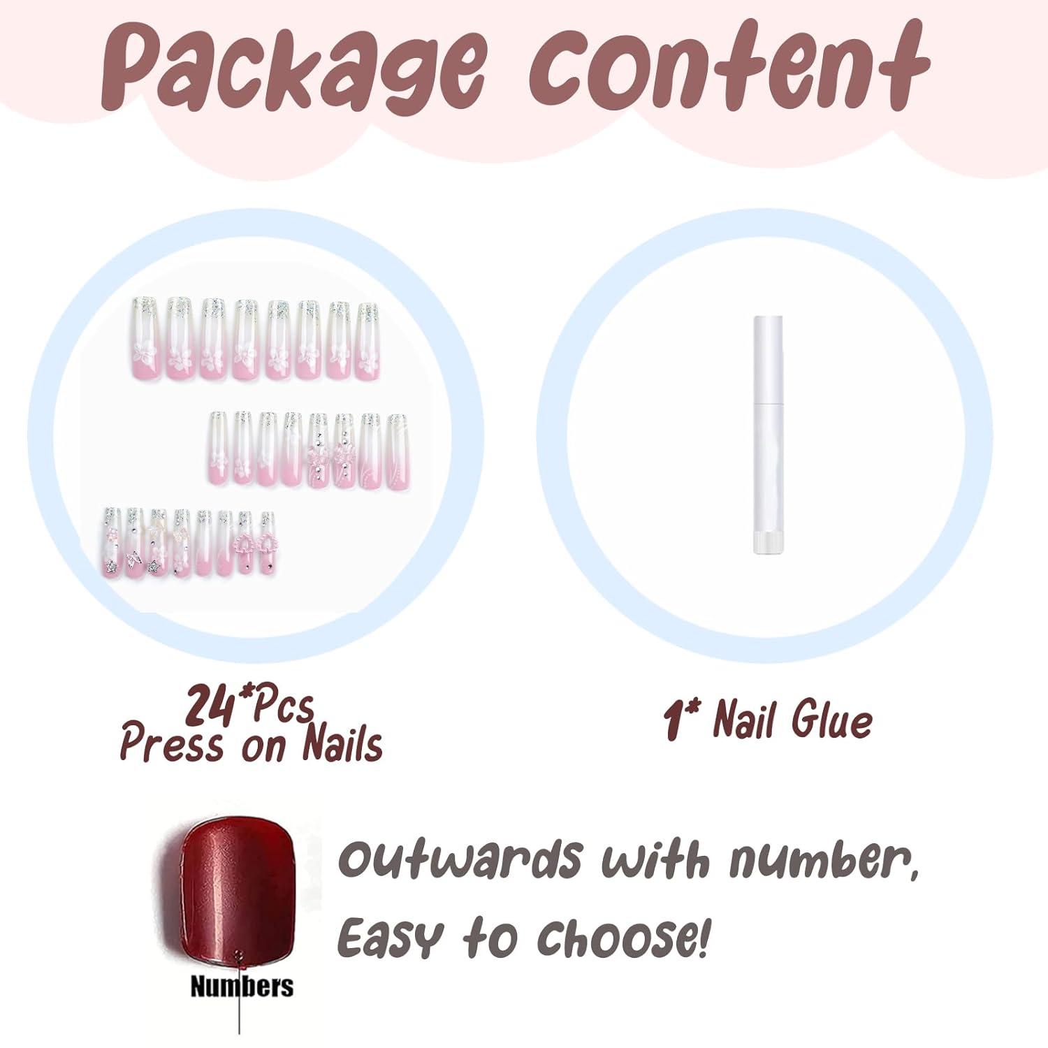【Lasting Effect】Wear Them Weeks Straight or A Few Days – You Decide!If you want to get more than 14 days long lasting, we recommend using nail glue and adhesive tabs together. If you want to change the design weekly, only using glue is best choice. Adhesive tab is best for a date night or a little event