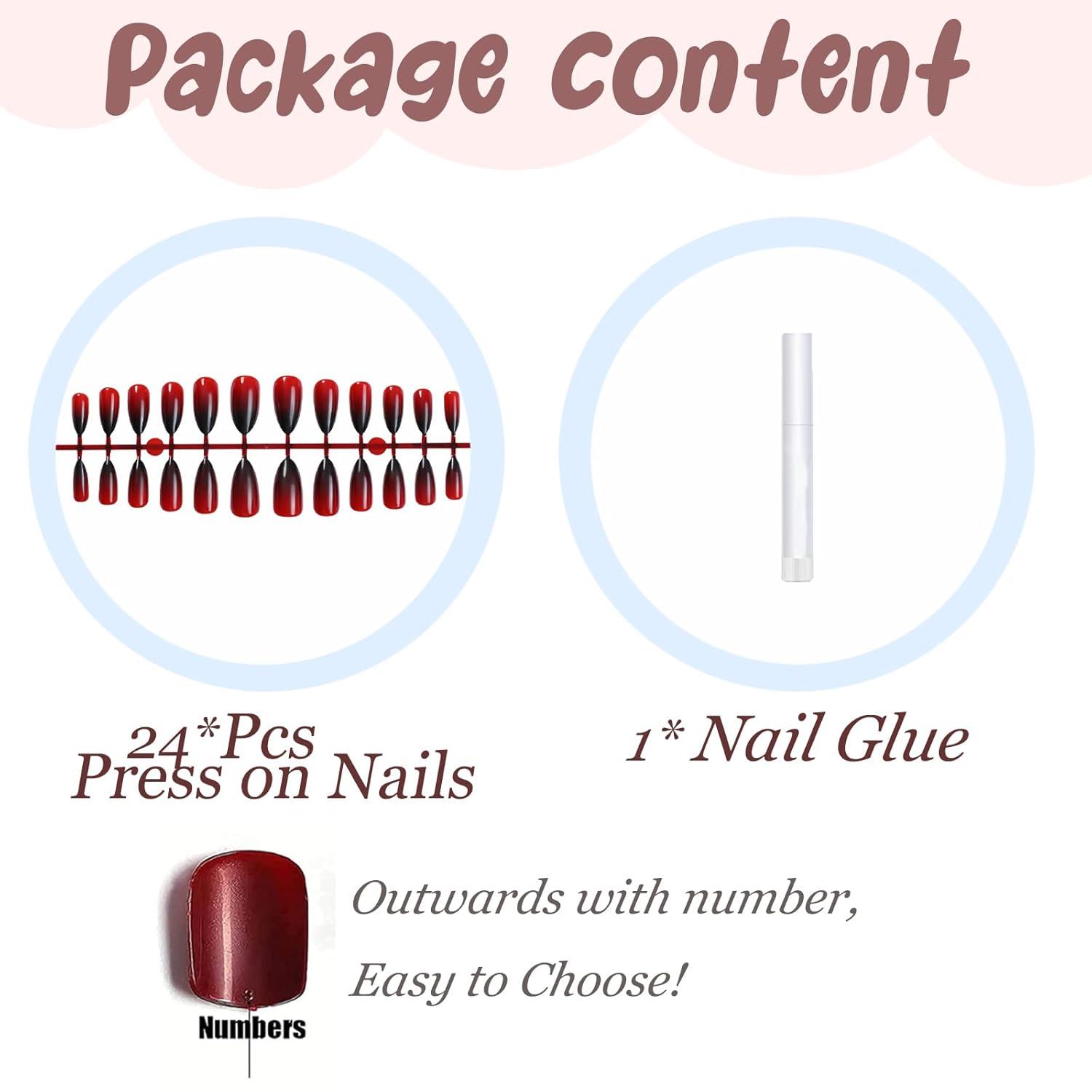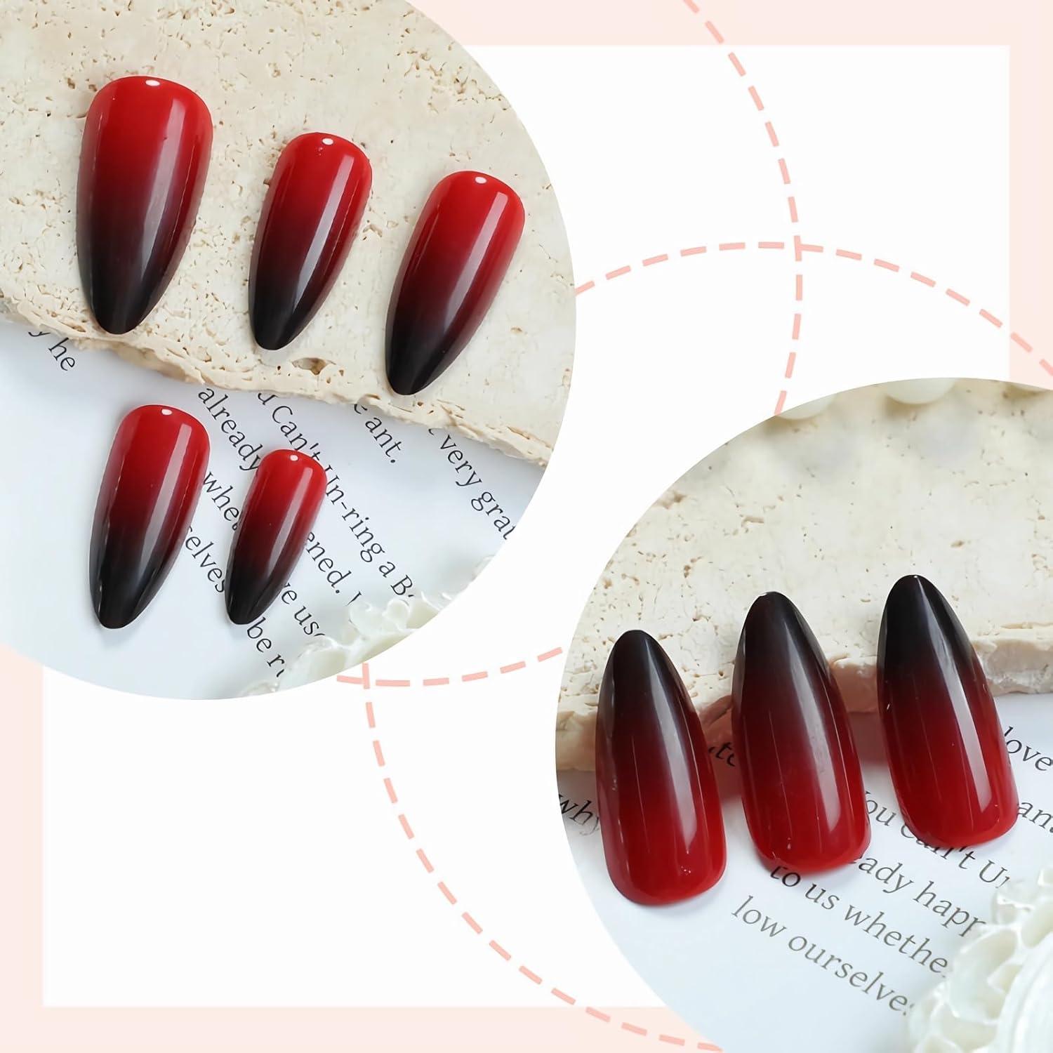 BABALAL Gothic Press on Nails Black Red Fake Nails - Almond Medium, Acrylic, 24Pcs Glossy Manicure Full Cover False Nails(FNZ12blackred)