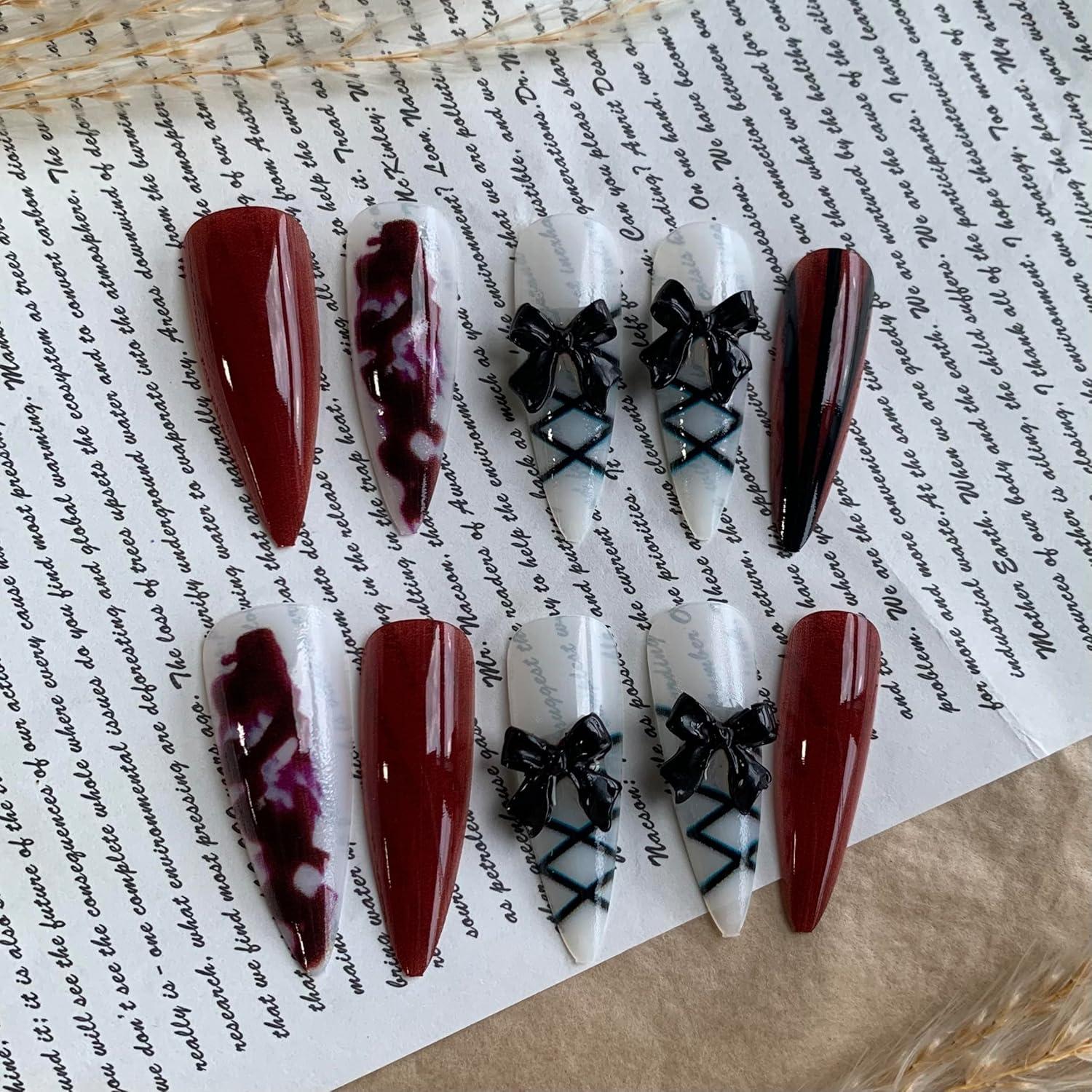 【Wide Occasions】These fake nails long designs can make you stand out at parties, dates, weddings, valentine Day proms, and Halloween. It can be given as a gift to your wife, mother, girlfriend, daughter or friends. It will bring them a comfortable and convenient manicure art experience