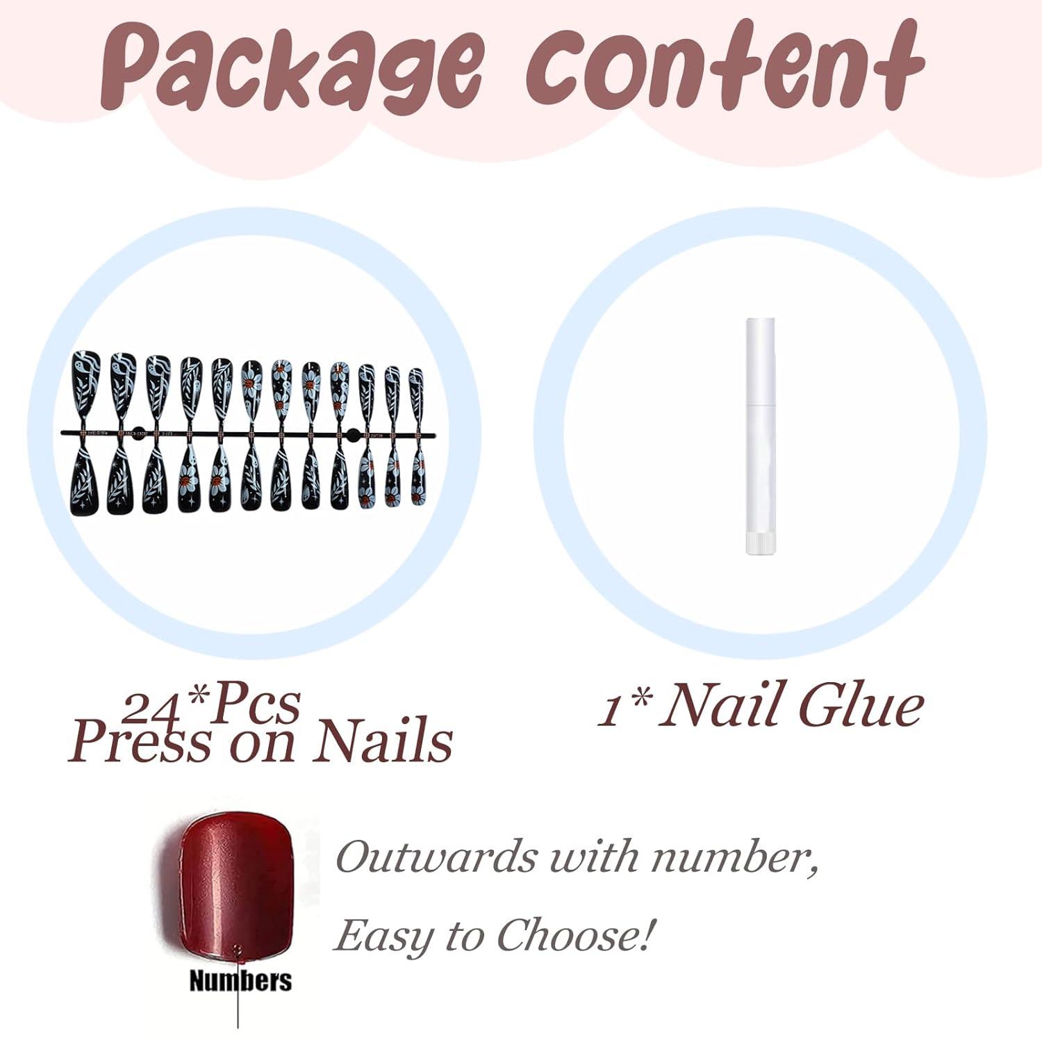 【Package Contains】You will get 24 pieces of long press on nails with 12 different sizes, 1 nail glue for DIY your own nails. you can choose the most suitable false nail for yourself, it is easy to trim and file them to in any length and shape you like