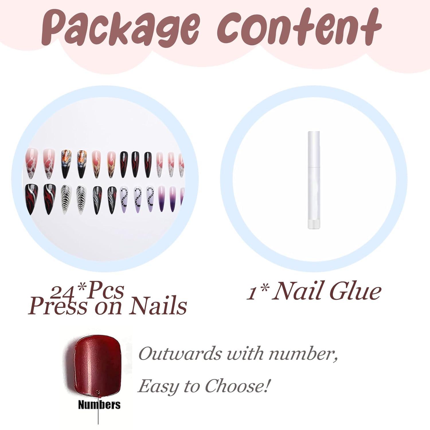 Package Contains: You will get 24pcs long press on nails, 1pc nail glue. No need to buy other things, you can get the nail salon-like effect