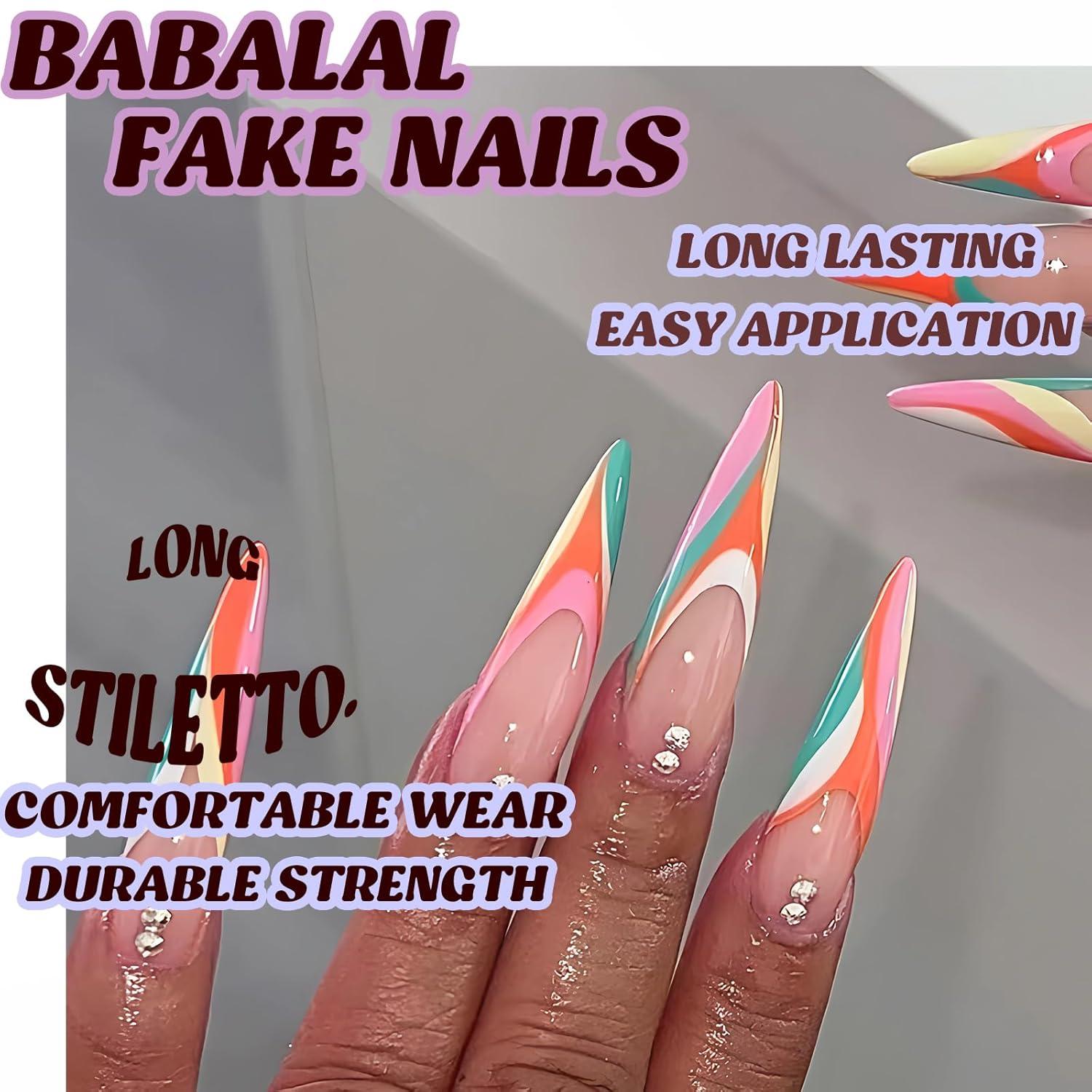 Easy to Use: The press on nails long are designed according to the curvature of female nails, with moderate thickness, natural fit, more natural effect, and comfortable to use