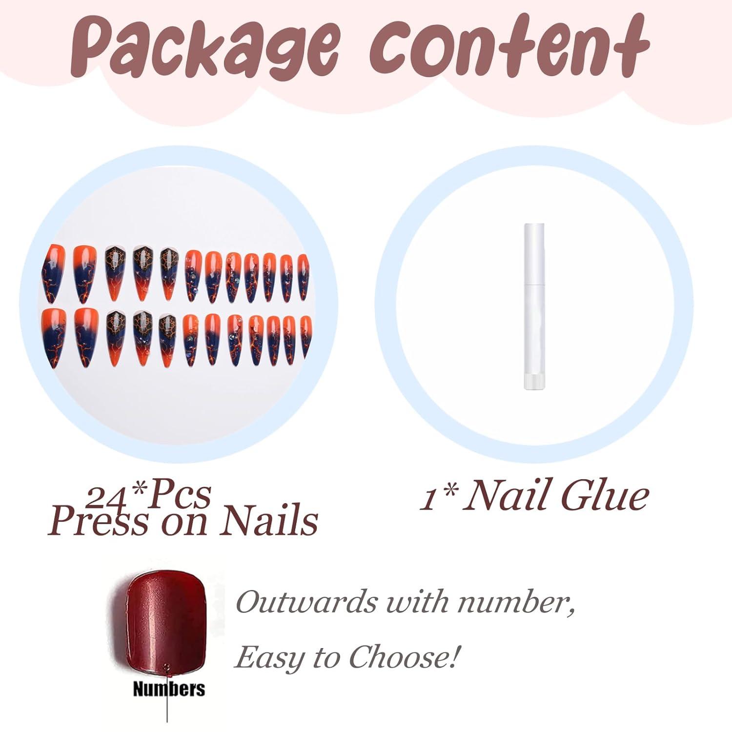 Package Contains: You will get 24pcs long press on nails, 1pc nail glue. No need to buy other things, you can get the nail salon-like effect