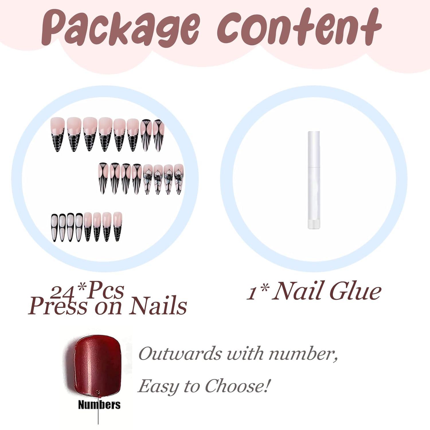 Package Contains: You will get 24pcs long press on nails, 1pc nail glue. No need to buy other things, you can get the nail salon-like effect