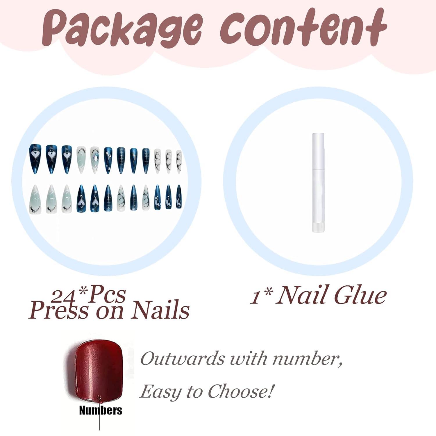 Package Contains: You will get 24pcs long press on nails, 1pc nail glue. No need to buy other things, you can get the nail salon-like effect