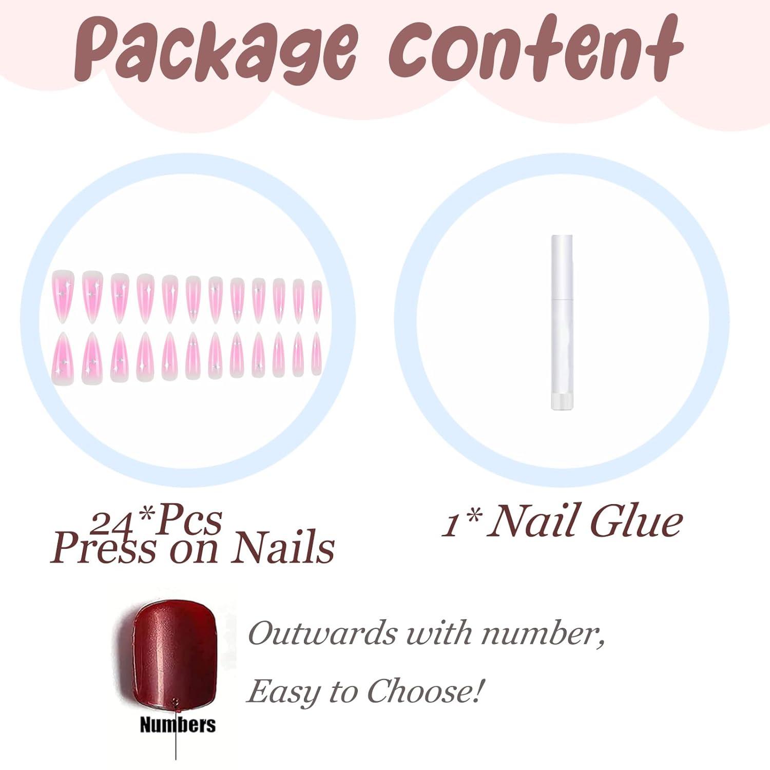 Package Contains: You will get 24pcs long press on nails, 1pc nail glue. No need to buy other things, you can get the nail salon-like effect