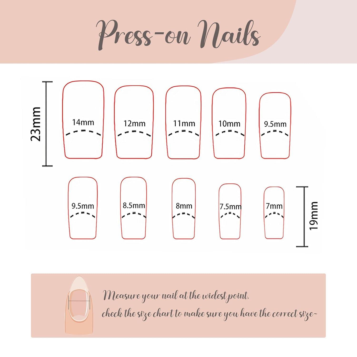 【Package Contains】You will get 24 pieces of long press on nails with 12 different sizes, 1 nail glue for DIY your own nails. you can choose the most suitable false nail for yourself, it is easy to trim and file them to in any length and shape you like