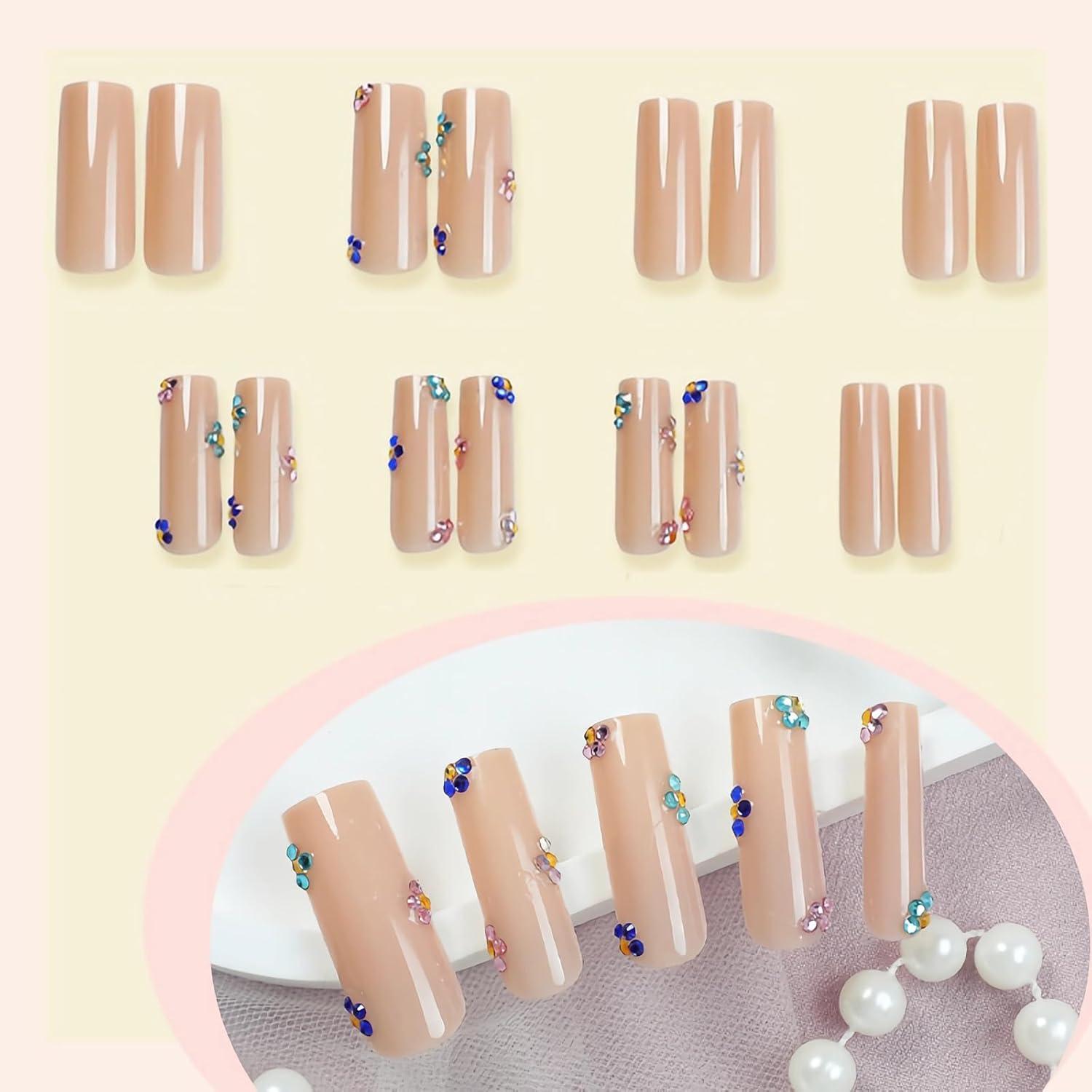 【Package Contains】You will get 24 pieces of long press on nails with 12 different sizes, 1 nail glue for DIY your own nails. you can choose the most suitable false nail for yourself, it is easy to trim and file them to in any length and shape you like