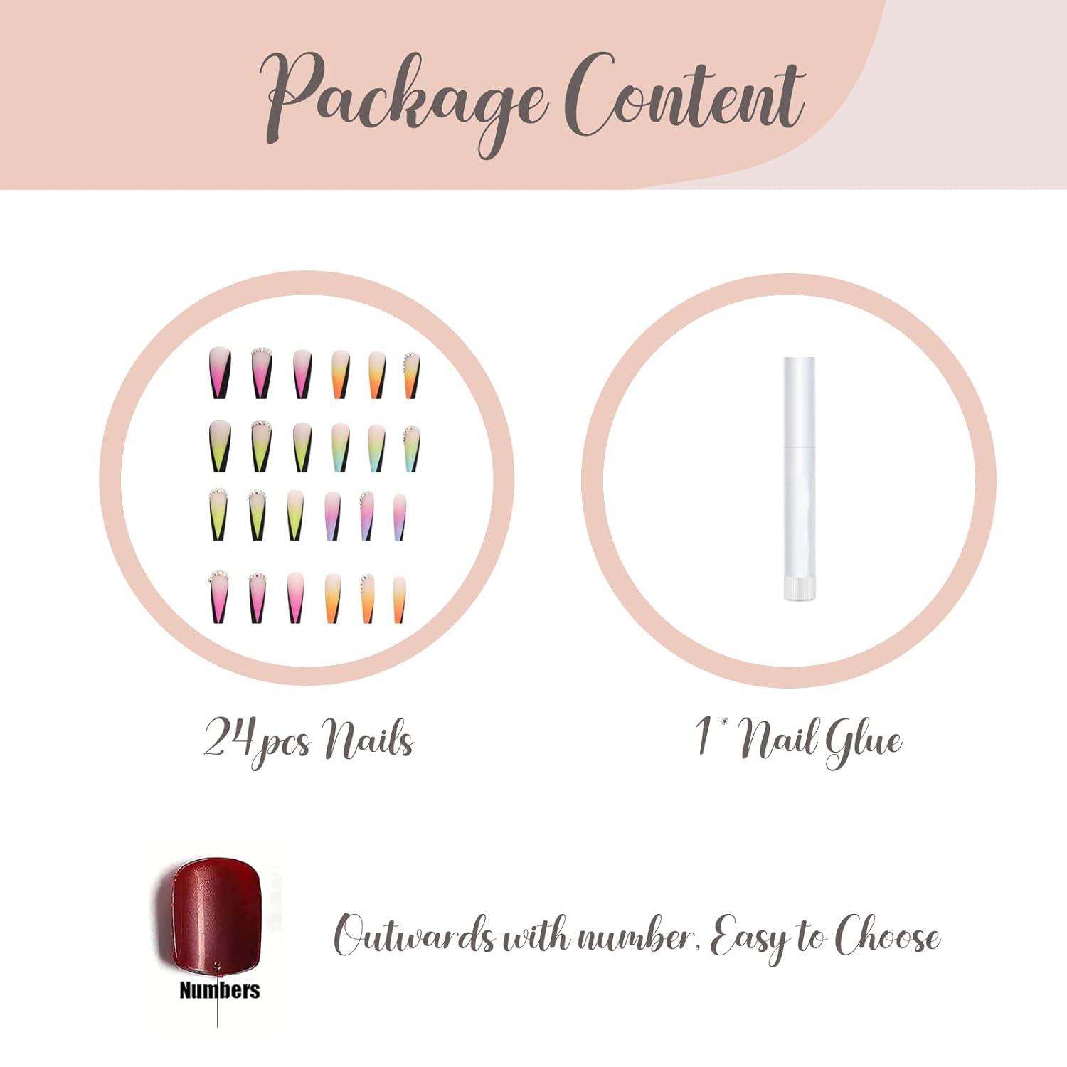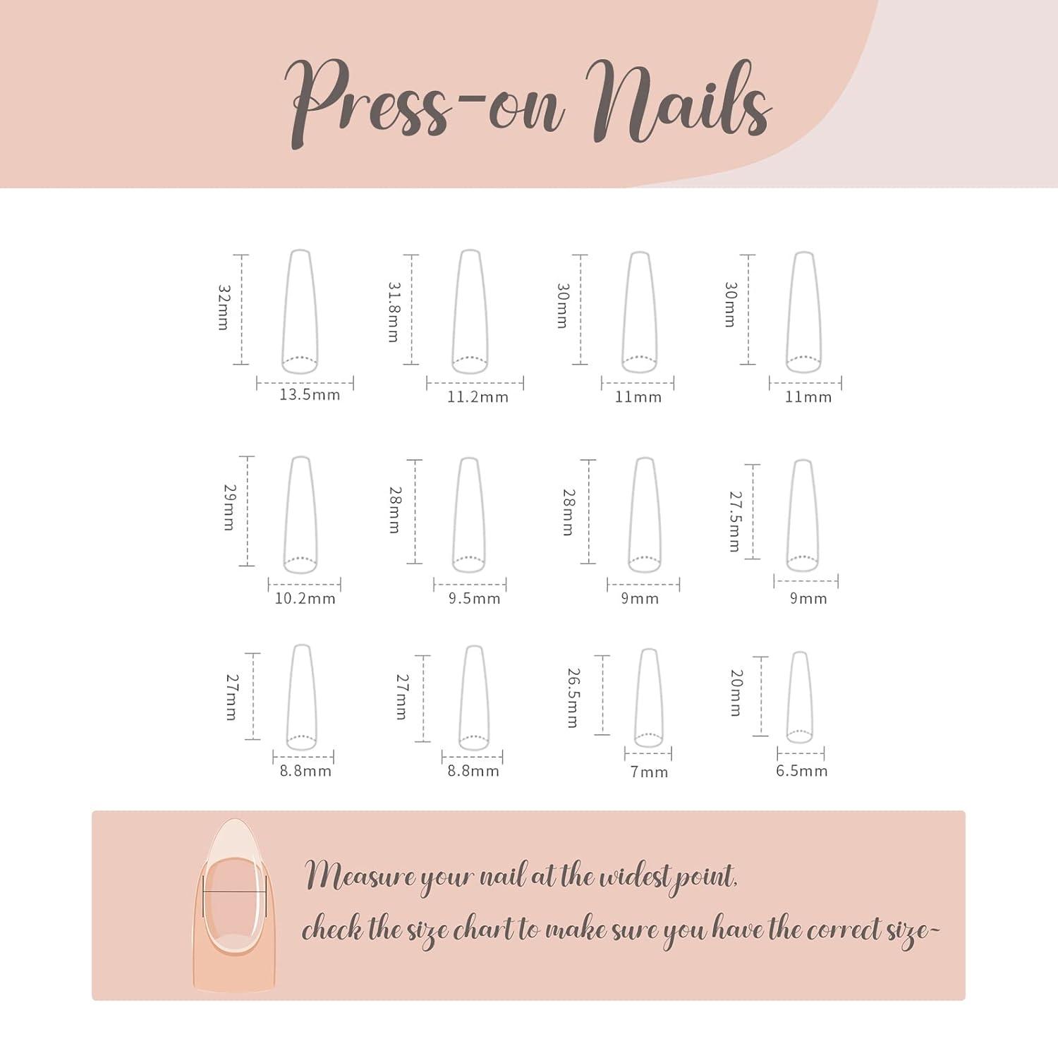 【Package Contains】You will get 24 pieces of long press on nails with 12 different sizes, 1 nail glue for DIY your own nails. you can choose the most suitable false nail for yourself, it is easy to trim and file them to in any length and shape you like