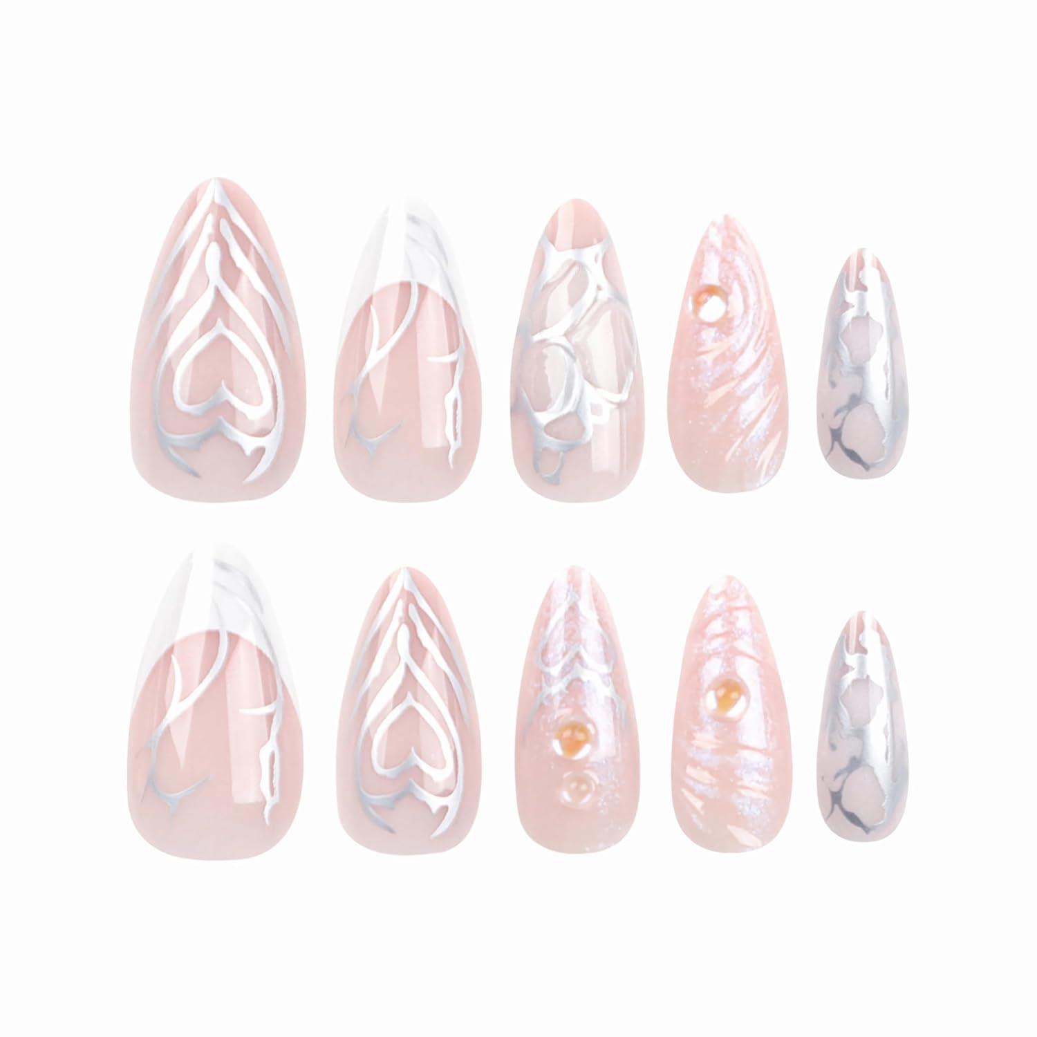 【Wide Occasions】These fake nails medium designs can make you stand out at parties, dates, weddings, valentine Day proms, and Christmas. It can be given as a gift to your wife, mother, girlfriend, daughter or friends. It will bring them a comfortable and convenient manicure art experience