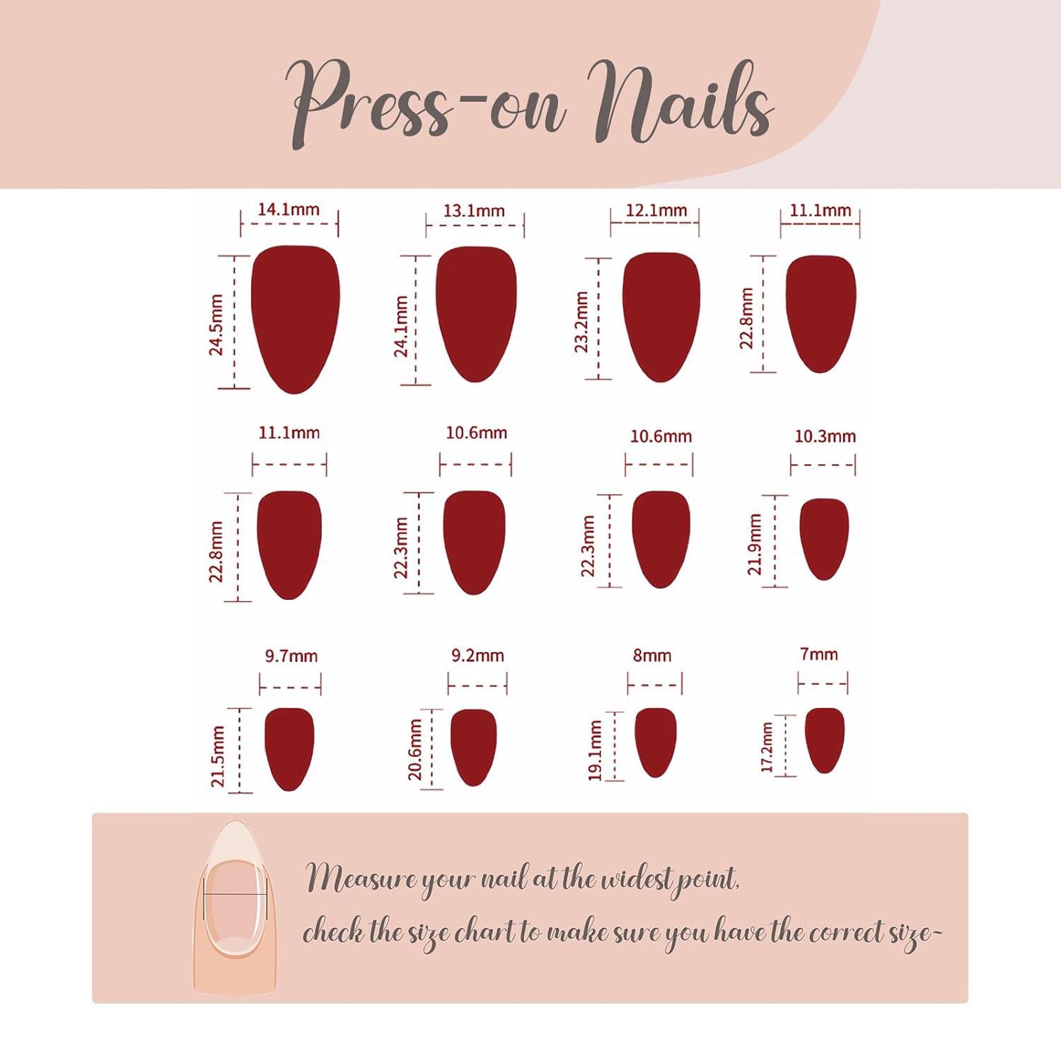 【Package Contains】You will get 24 pieces of medium press on nails with 12 different sizes, 1 nail glue for DIY your own nails. you can choose the most suitable false nail for yourself, it is easy to trim and file them to in any length and shape you like