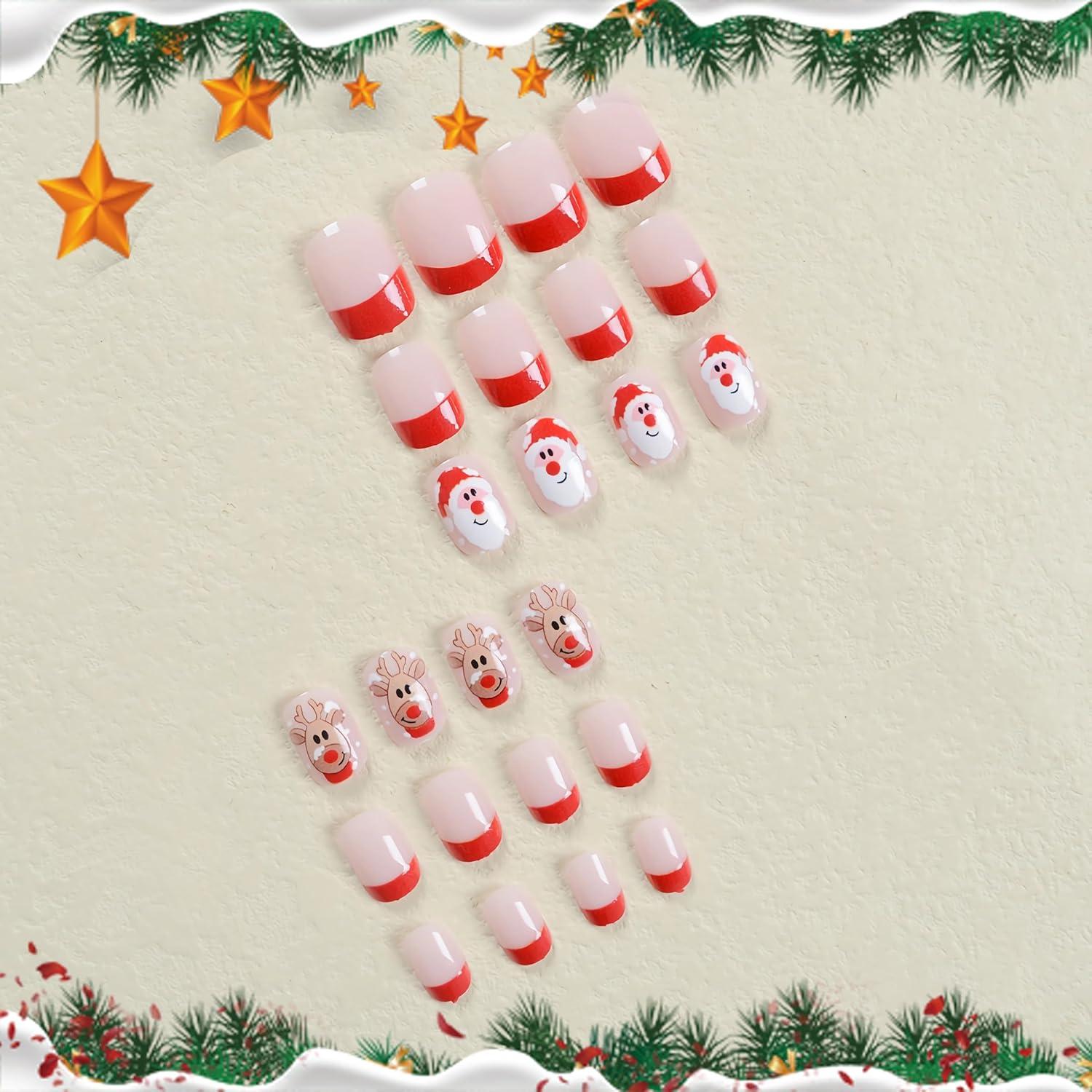 BABALAL Polka Dot Press on Nails Short Oval, Glossy Trendy Acrylic Fake Nails, 24Pcs Round Thick Glue on Nails for Women Girls Kids(FNr26xmas)