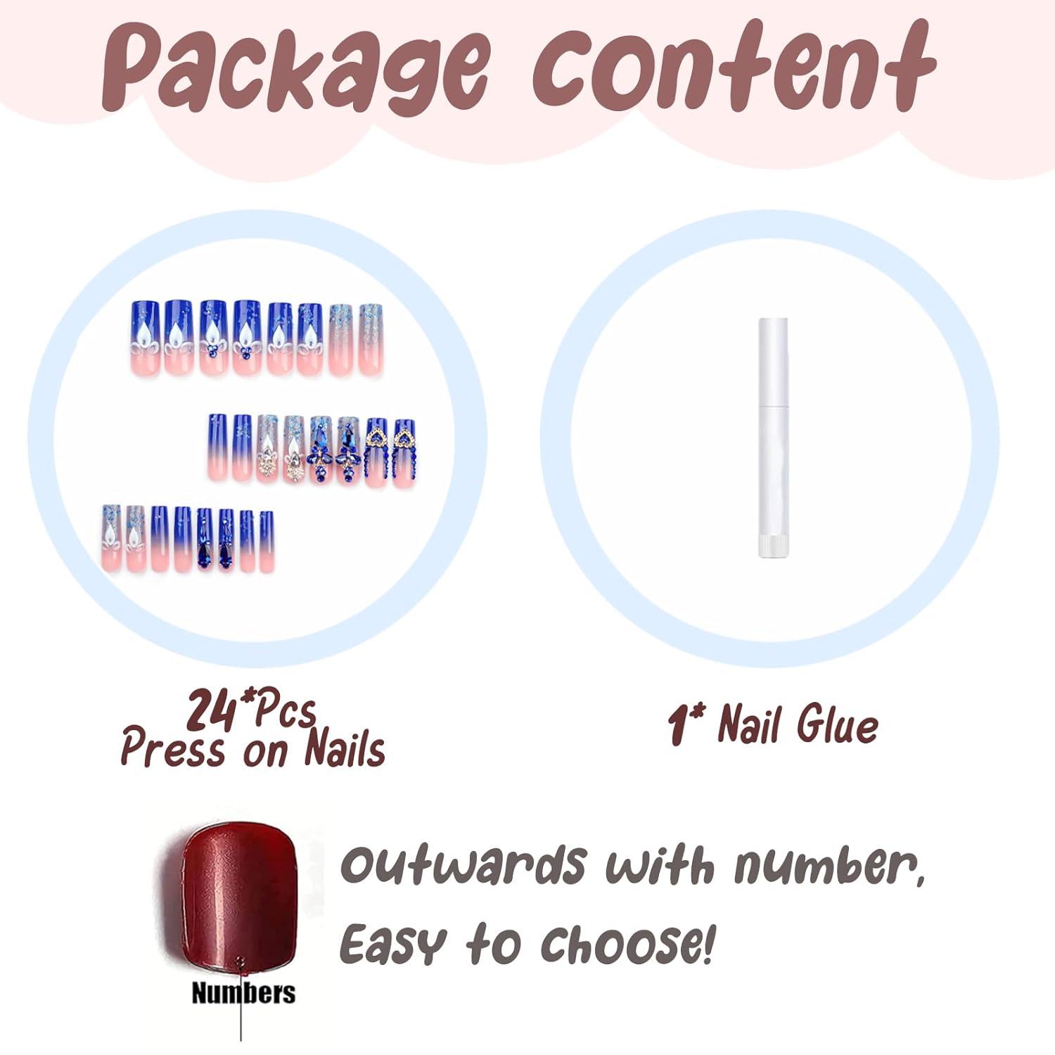 【Package Contains】You will get 24 pieces of long press on nails with 12 different sizes, 1 nail glue for DIY your own nails. you can choose the most suitable false nail for yourself, it is easy to trim and file them to in any length and shape you like