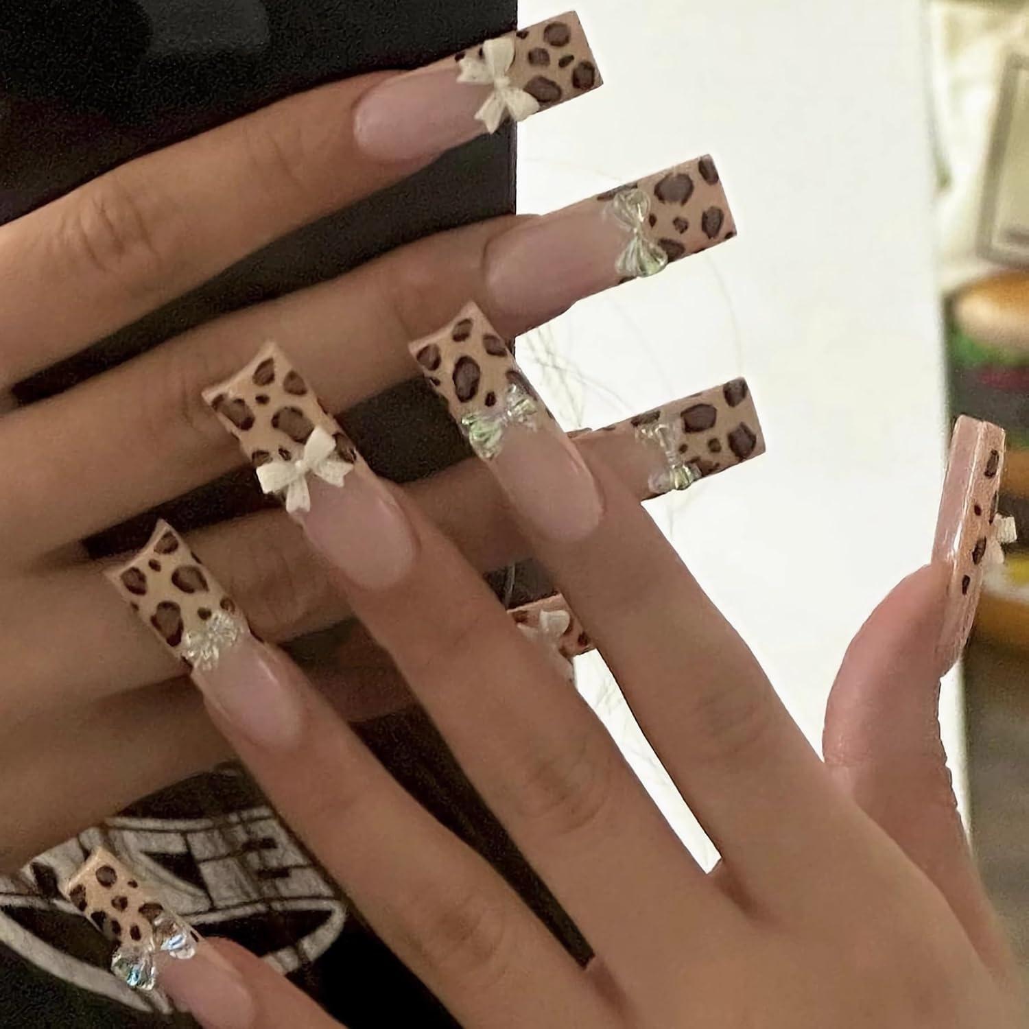 【Package Contains】You will get 24 pieces of long press on nails with 12 different sizes, 1 nail glue for DIY your own nails. you can choose the most suitable false nail for yourself, it is easy to trim and file them to in any length and shape you like