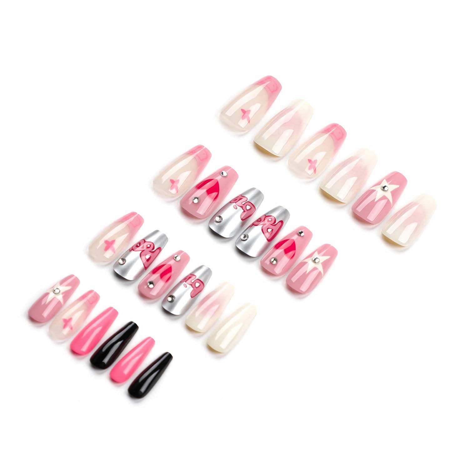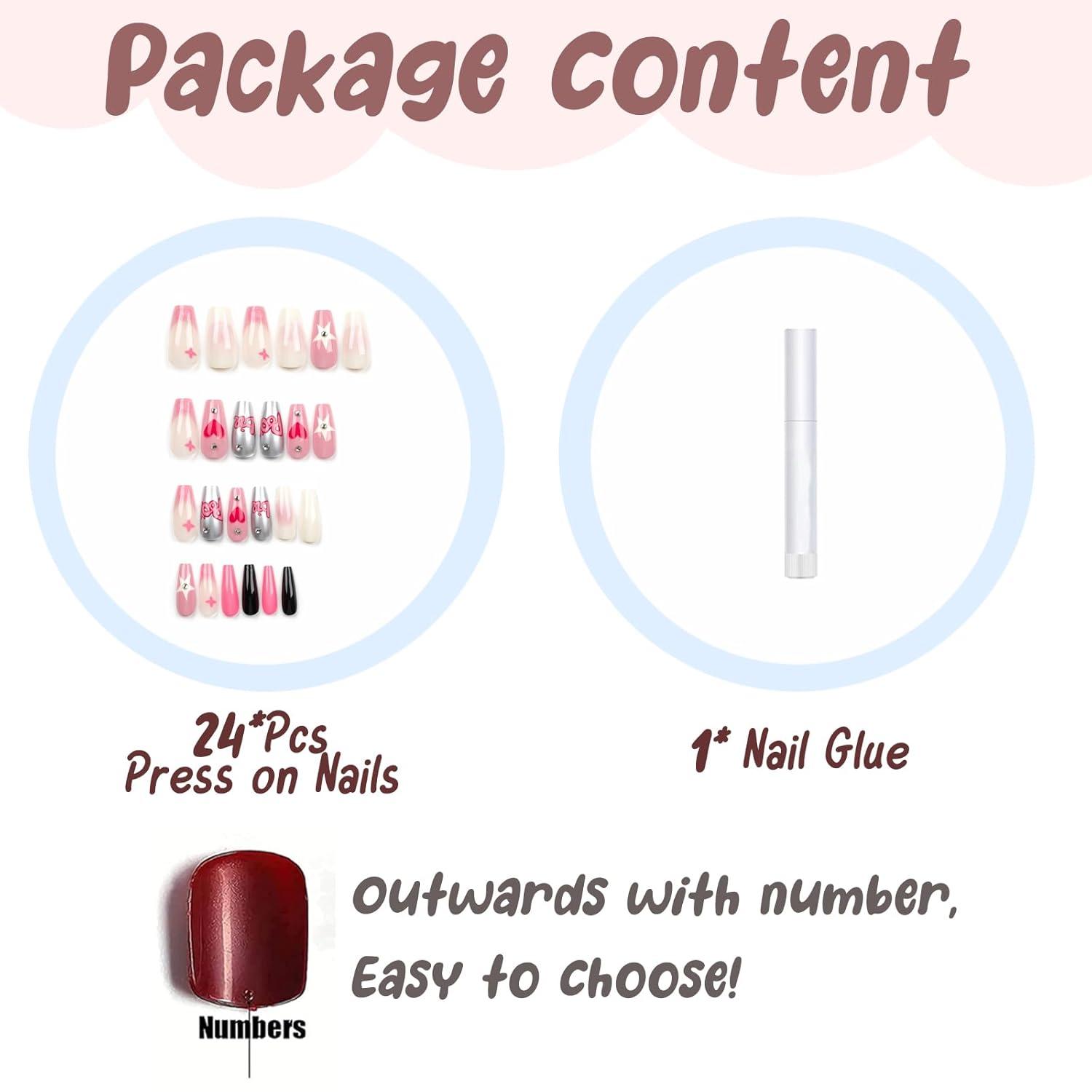 【Wide Occasions】These fake nails long designs can make you stand out at parties, dates, weddings, valentine Day proms, and Halloween. It can be given as a gift to your wife, mother, girlfriend, daughter or friends. It will bring them a comfortable and convenient manicure art experience