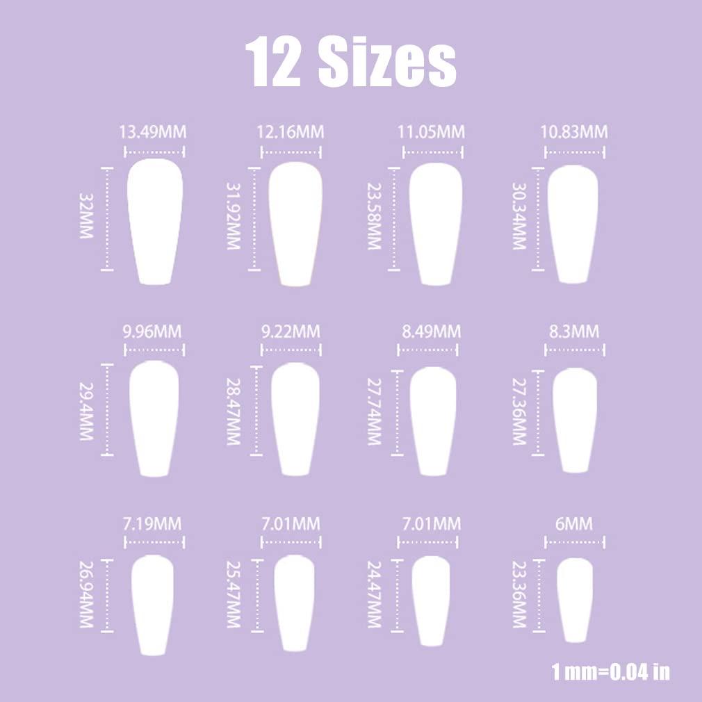 【Package Contains】You will get 24 pieces of long press on nails with 12 different sizes, 1 nail glue for DIY your own nails. you can choose the most suitable false nail for yourself, it is easy to trim and file them to in any length and shape you like