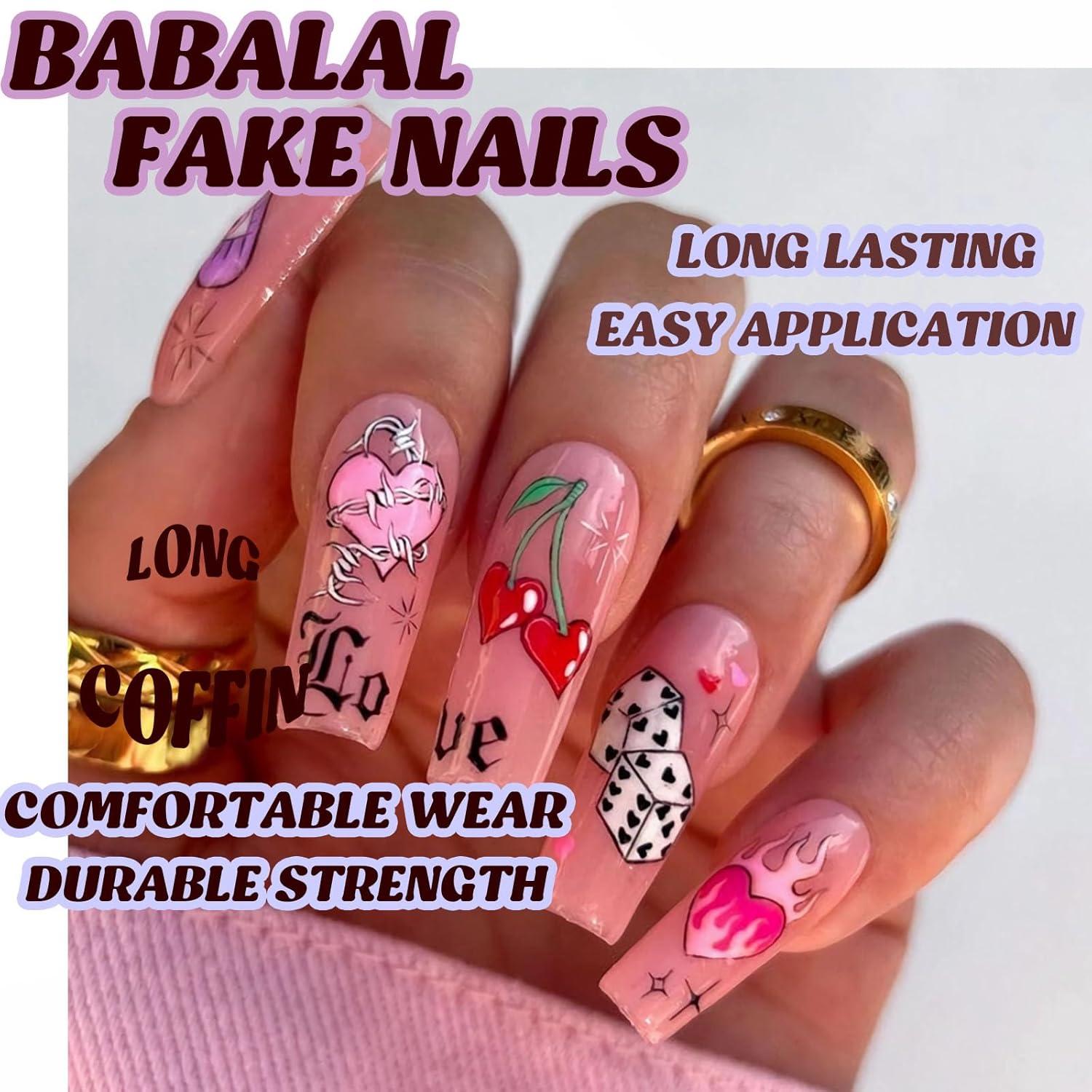 【Wide Occasions】These fake nails long designs can make you stand out at parties, dates, weddings, valentine Day proms, and Halloween. It can be given as a gift to your wife, mother, girlfriend, daughter or friends. It will bring them a comfortable and convenient manicure art experience