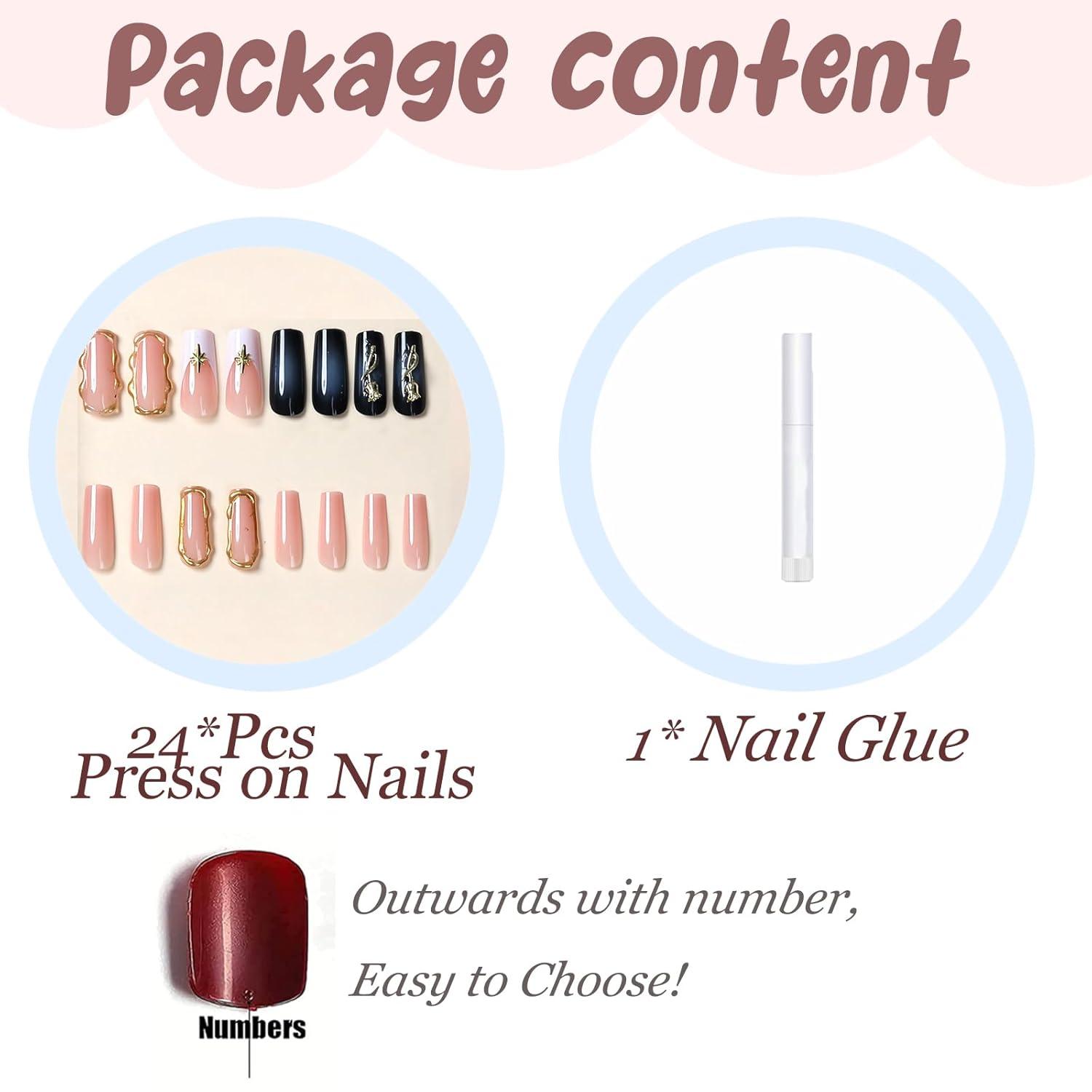 【Package Contains】You will get 24 pieces of long press on nails with 12 different sizes, 1 nail glue for DIY your own nails. you can choose the most suitable false nail for yourself, it is easy to trim and file them to in any length and shape you like