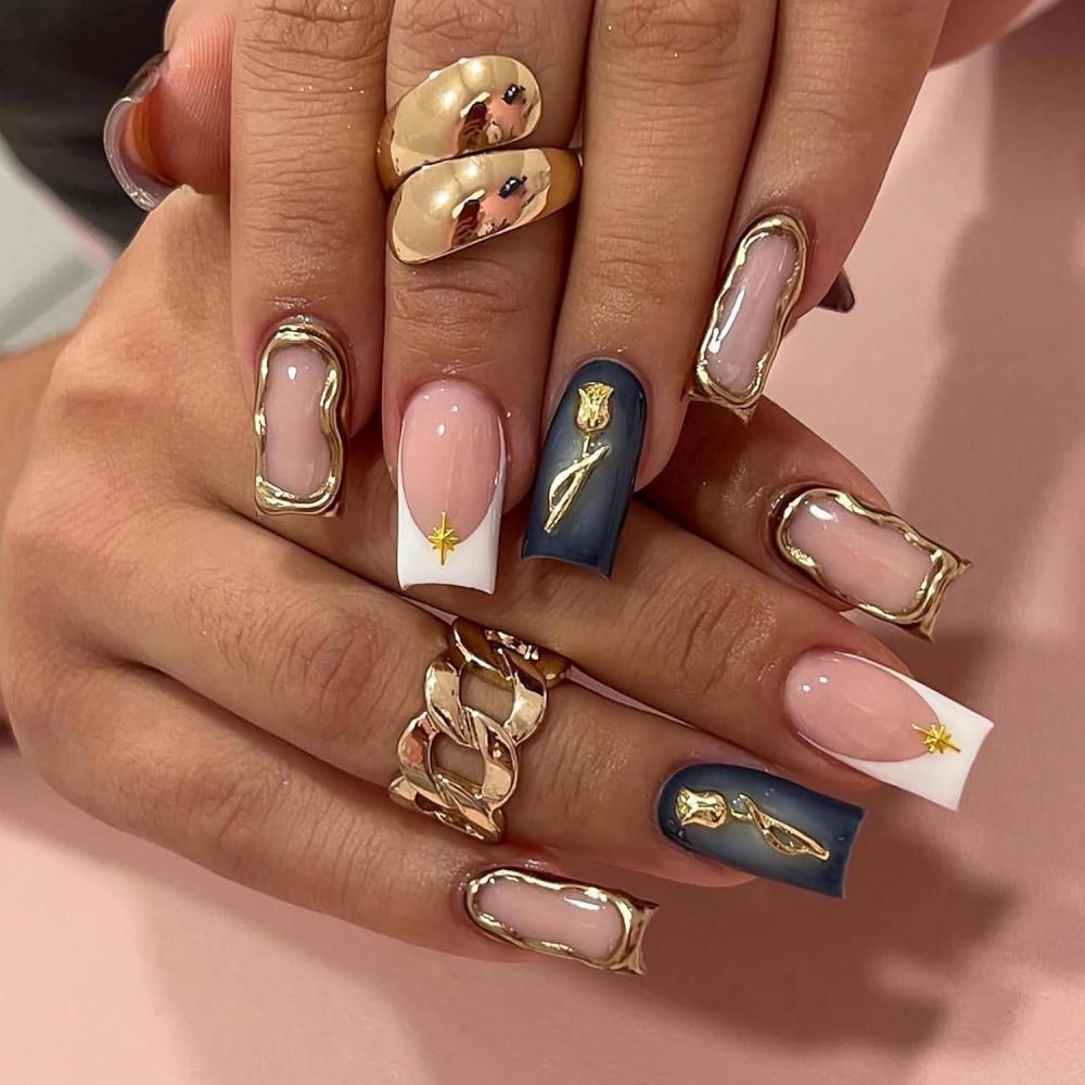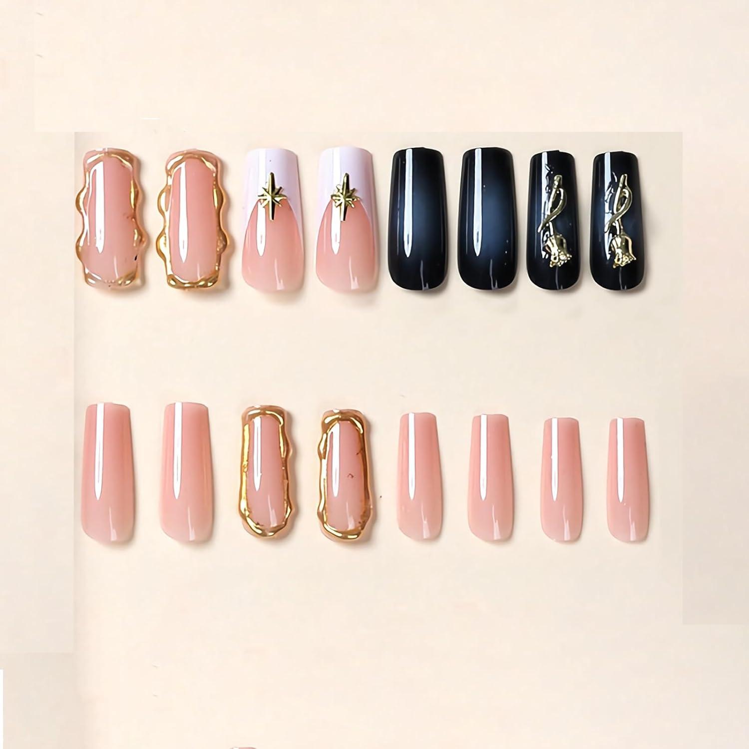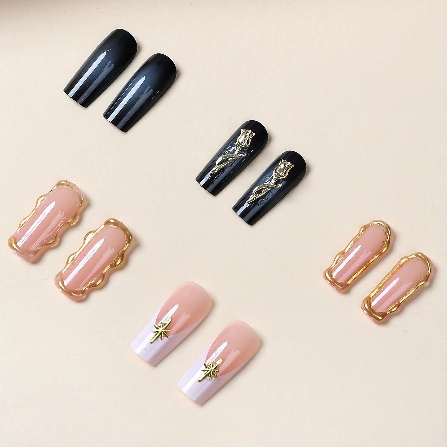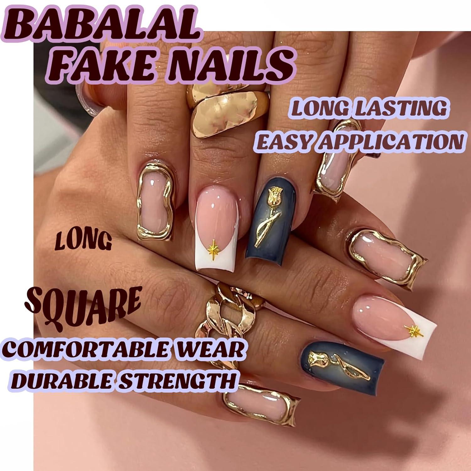 【Health】 BABALAL black gold press on nails are made of healthy ABS material, higher gloss, not easy to break, and will not harm the body or nails, and can be used with confidence