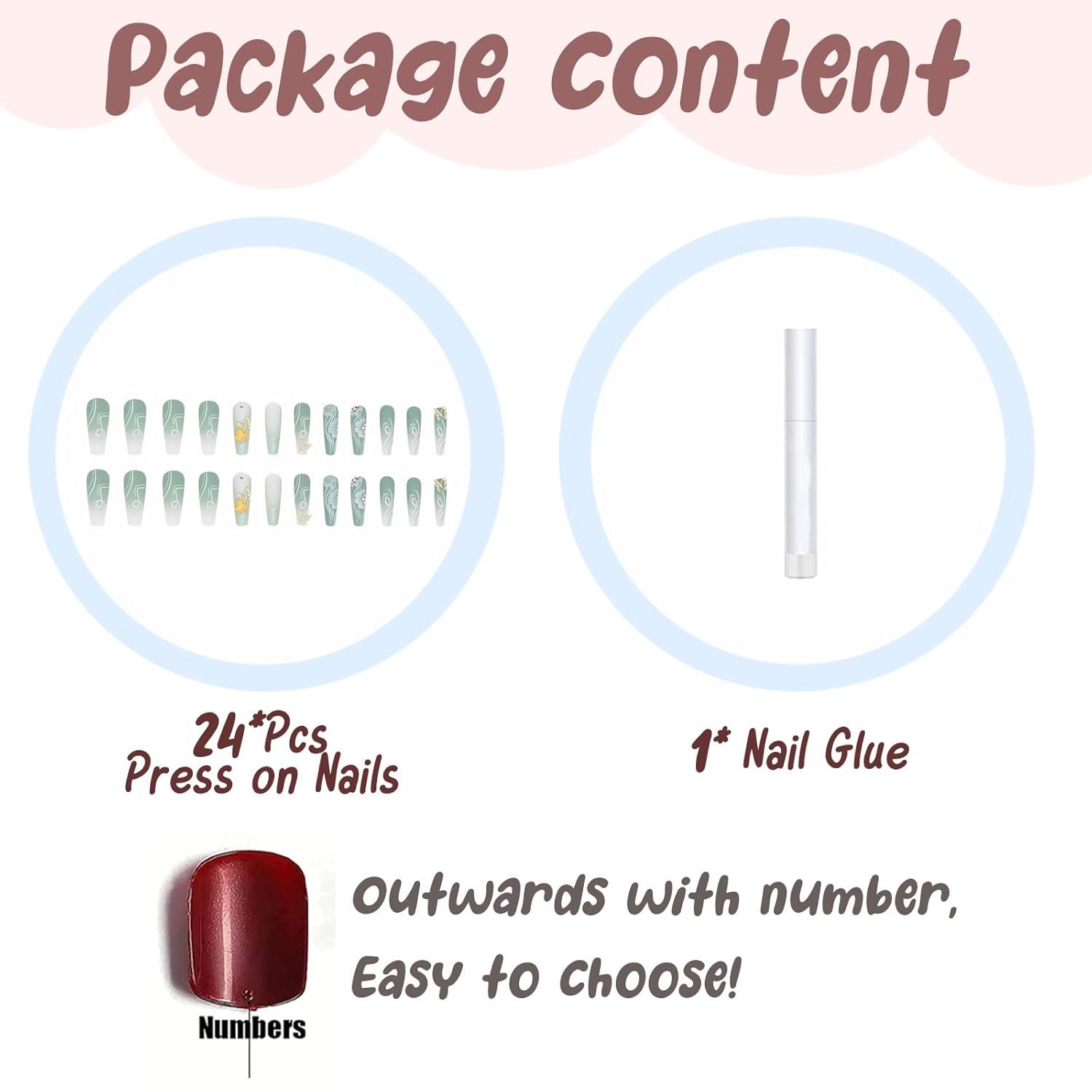 【Package Contains】You will get 24 pieces of long press on nails with 12 different sizes, 1 nail glue for DIY your own nails. you can choose the most suitable false nail for yourself, it is easy to trim and file them to in any length and shape you like