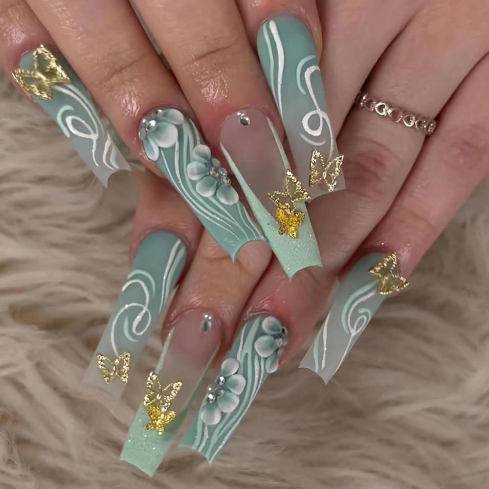 Be the first to review “BABALAL Press on Nails Long Square Fake Nails Black Gold Goth Glue on Cross Charm Luxury Design 3D Handmade French Tip Acrylic 24Pcs Glossy Manicure Full Cover Stick on Nails(fneb117green)”