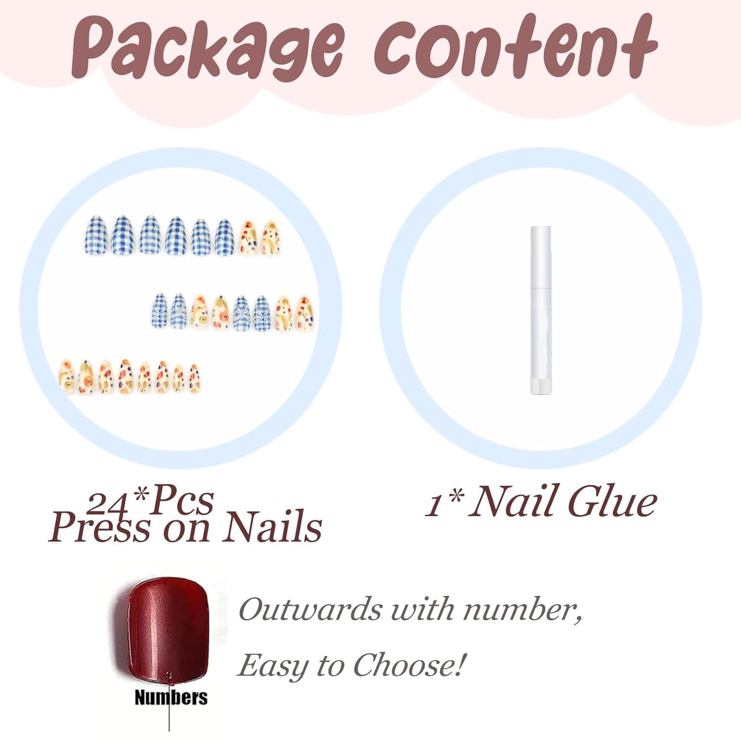 【Package Contains】You will get 24 pieces of medium press on nails with 12 different sizes, 1 nail glue for DIY your own nails. you can choose the most suitable false nail for yourself, it is easy to trim and file them to in any length and shape you like