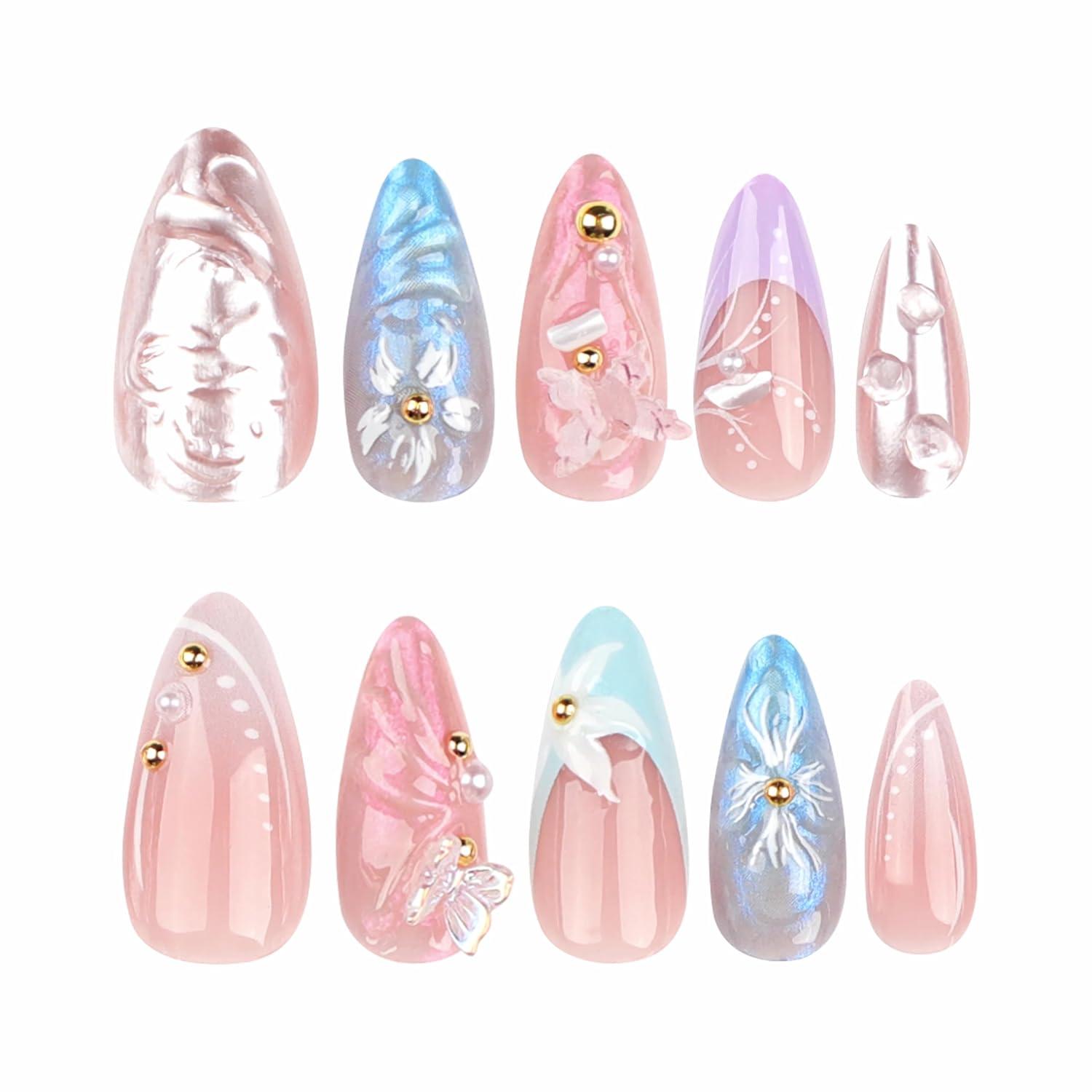【Wide Occasions】These fake nails long designs can make you stand out at parties, dates, weddings, valentine Day proms, and Halloween. It can be given as a gift to your wife, mother, girlfriend, daughter or friends. It will bring them a comfortable and convenient manicure art experience